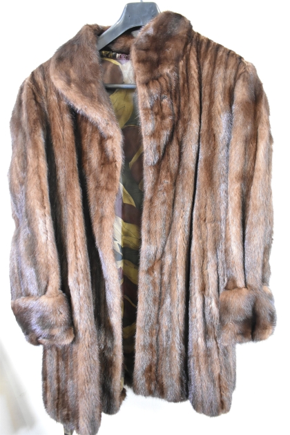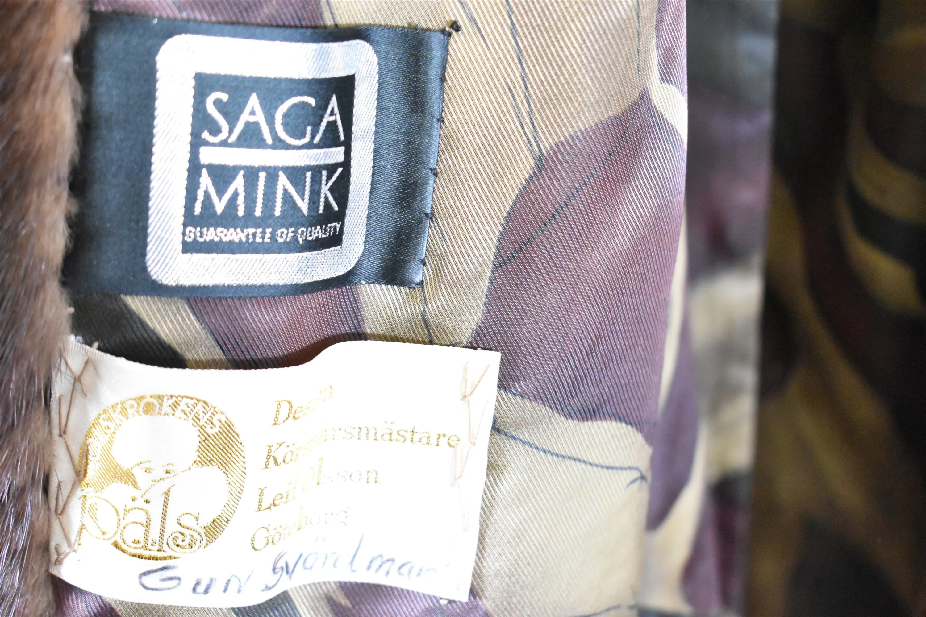 15244. Pälskappa Saga Mink, okänd storlek, längd 95 cm