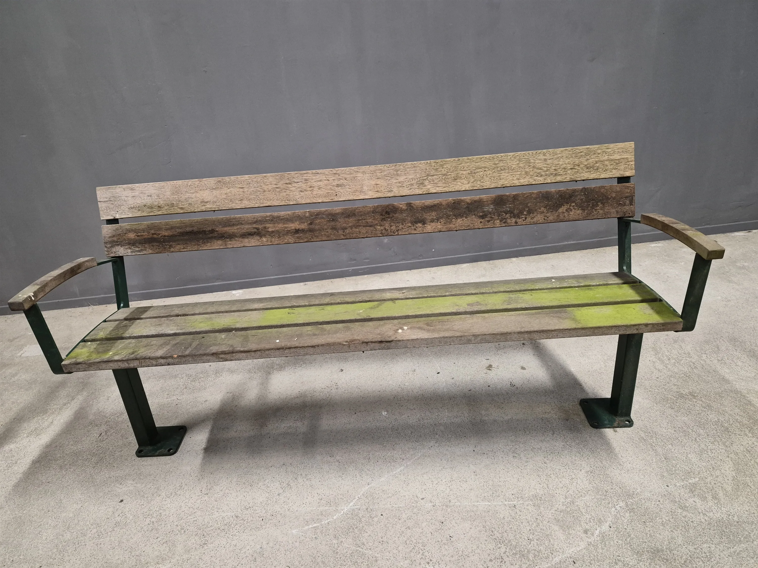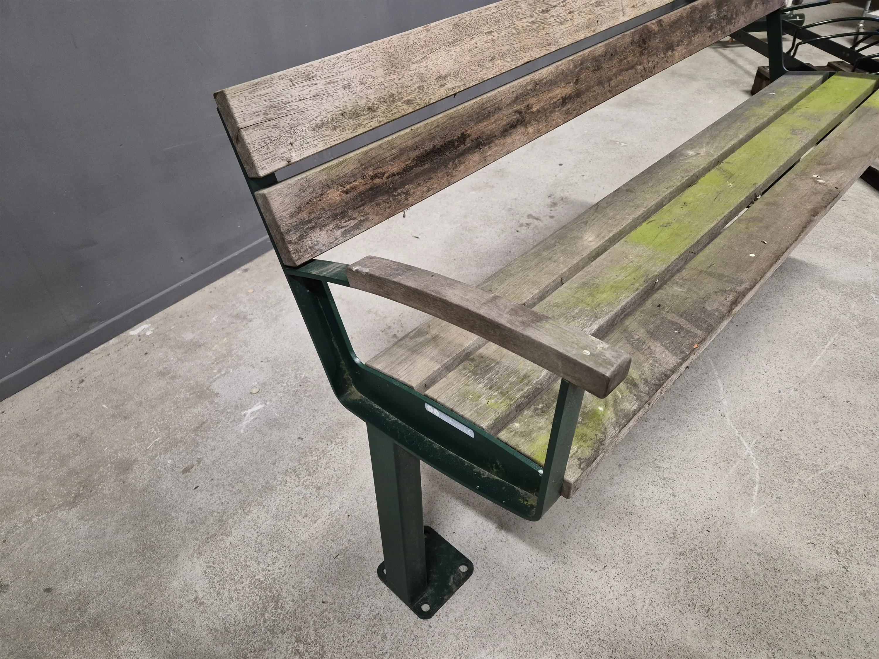 17436. Parkbänk, trä och metall, längd 180 cm, höjd 98 cm, bredd 56 cm