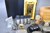 10591. Part bla sparbössor, gongong och svepask, högsta höjd 27 cm