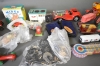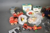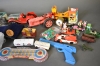 7734. Part blandade leksaker bla fordon, plåtleksaker och bokmärken, högsta höjd 13 cm