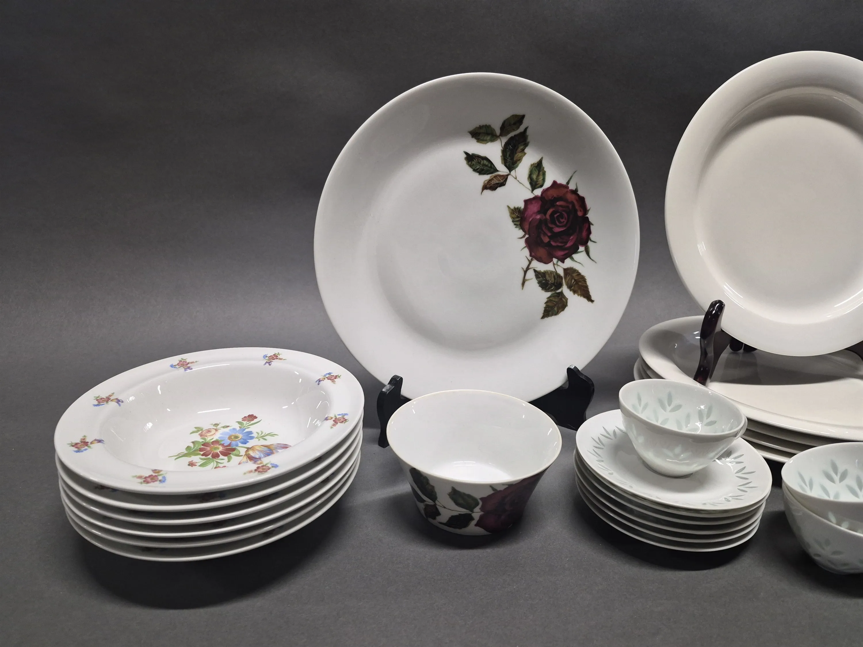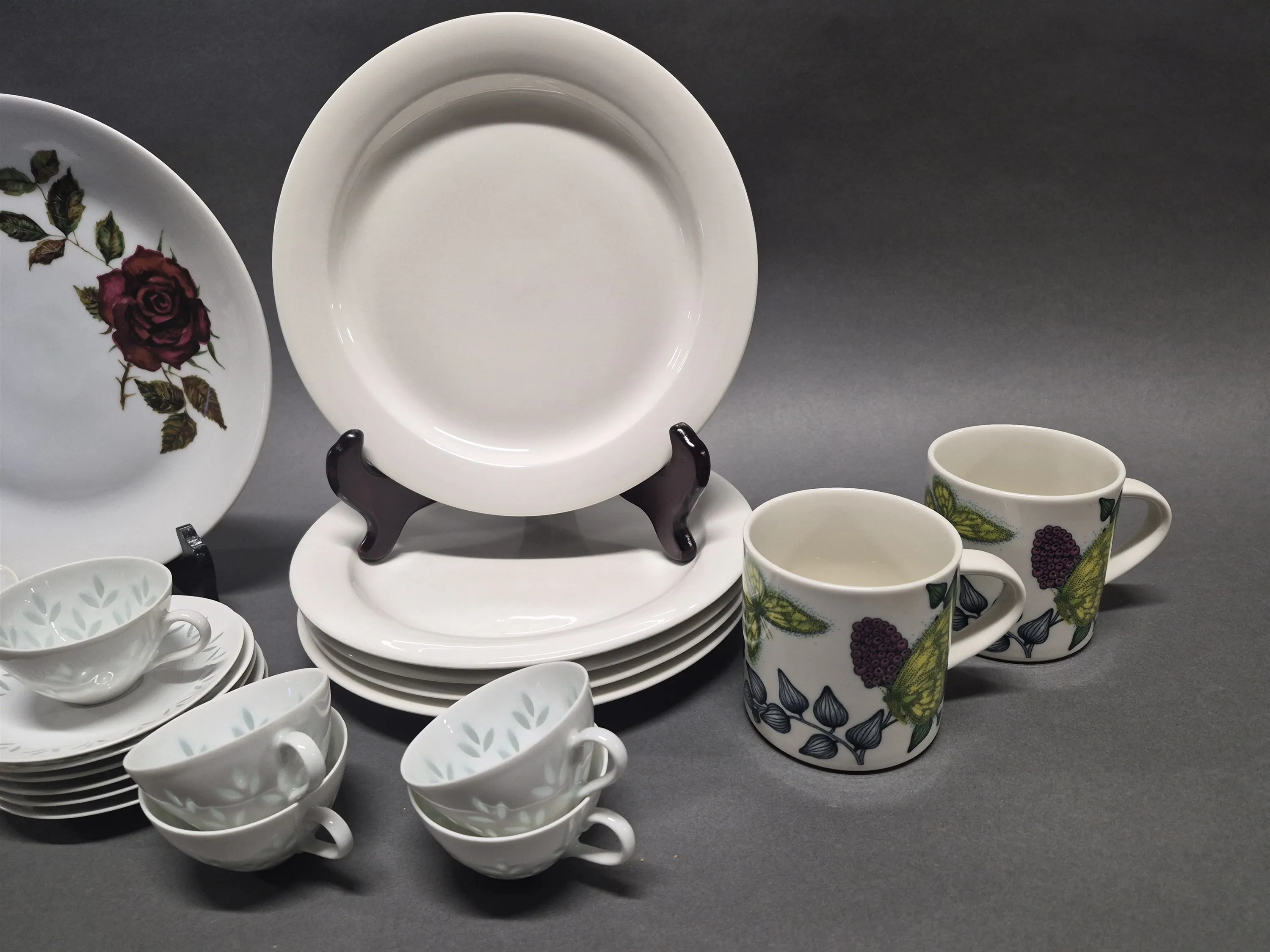 18893. Parti Arabia porslin bla muggar, tallrikar och mockakoppar, största diameter 26 cm