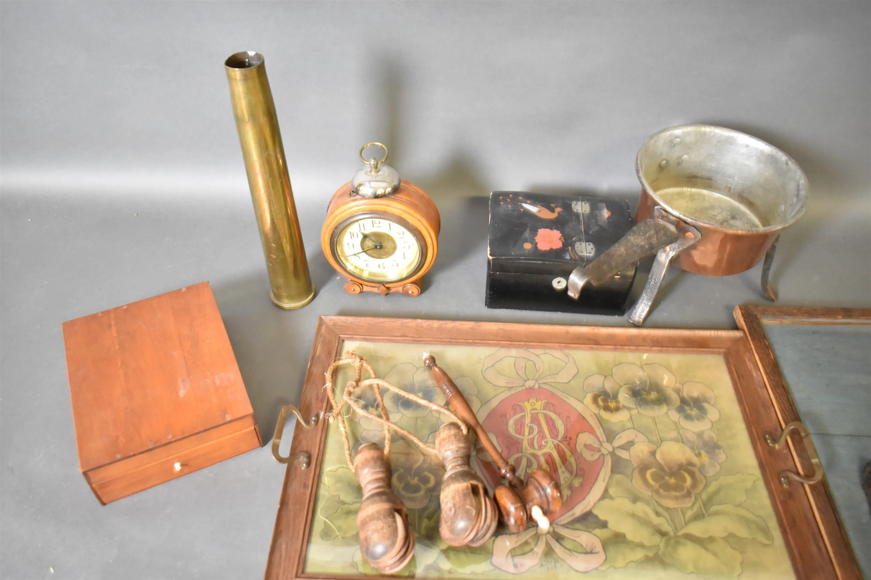 16771. Parti b l.a serveringsbricka & koppargryta längsta 60 cm
