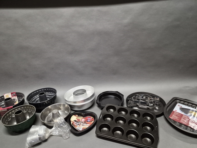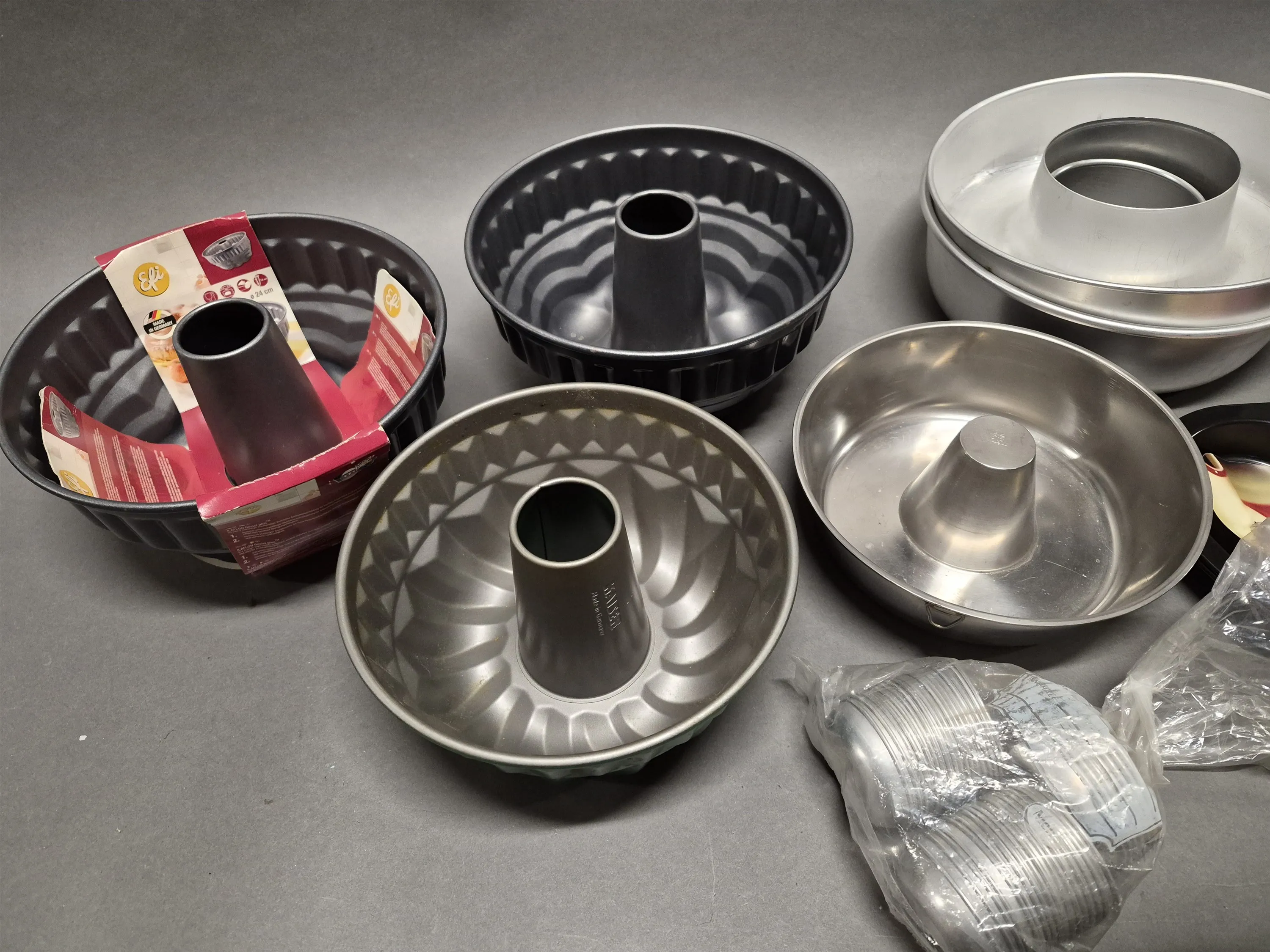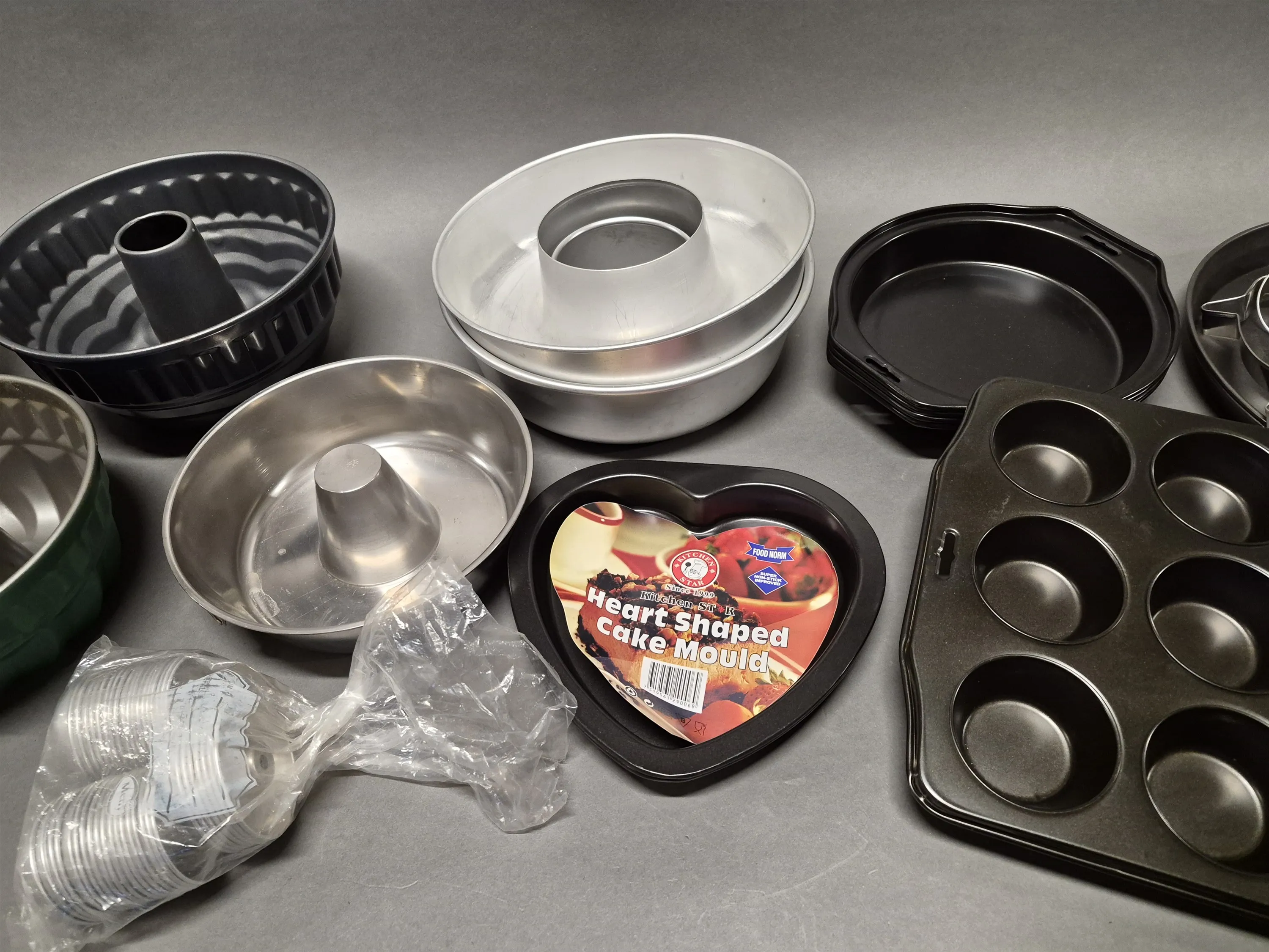 18189. Parti bakformar, metall, längsta mått 40 cm