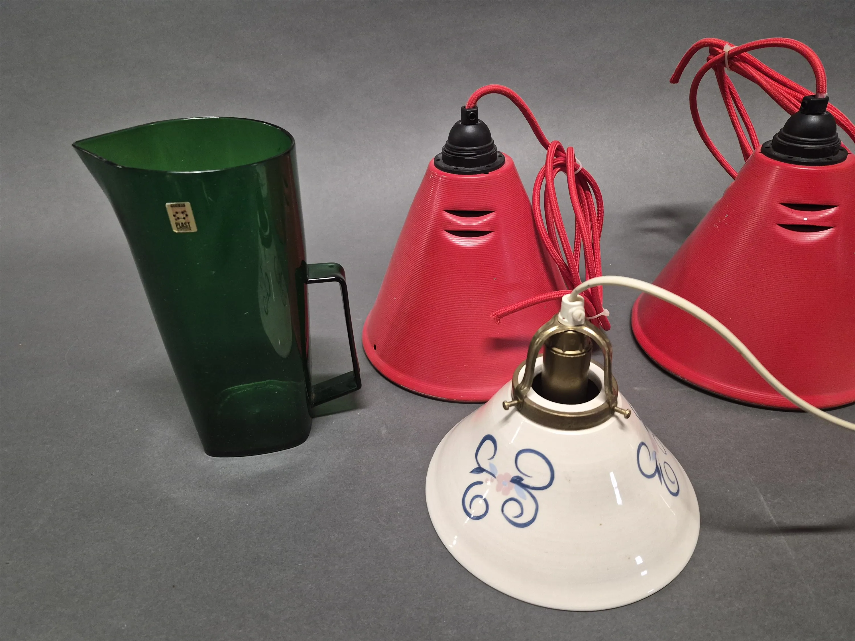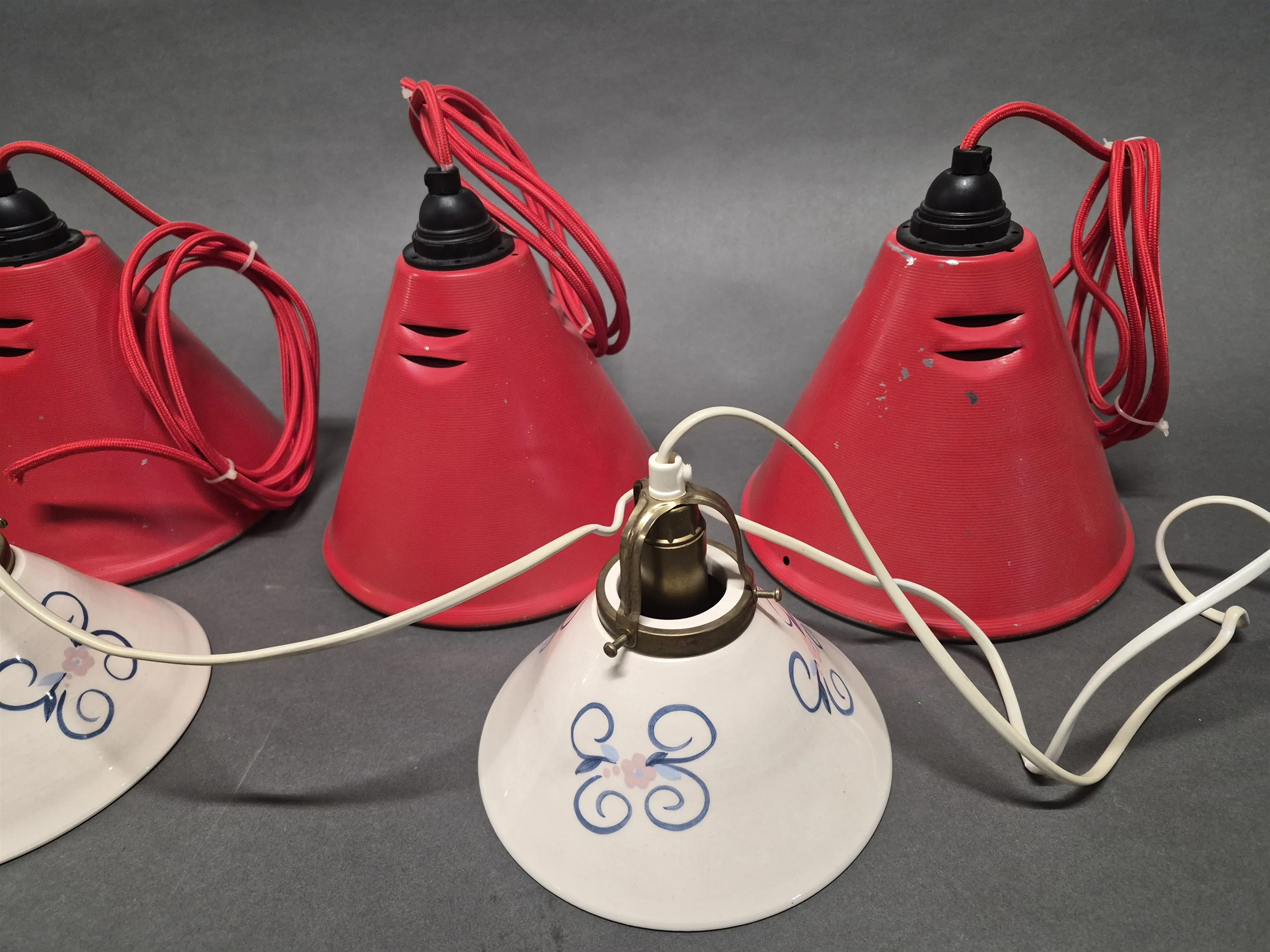 18106. Parti belysning 3+2 st plåt & porslin och kanna plast, högsta höjd 22 cm