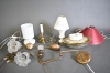 10817. Parti belysning bla bordslampor och vägglampa med vridbar arm, högsta höjd 34 cm