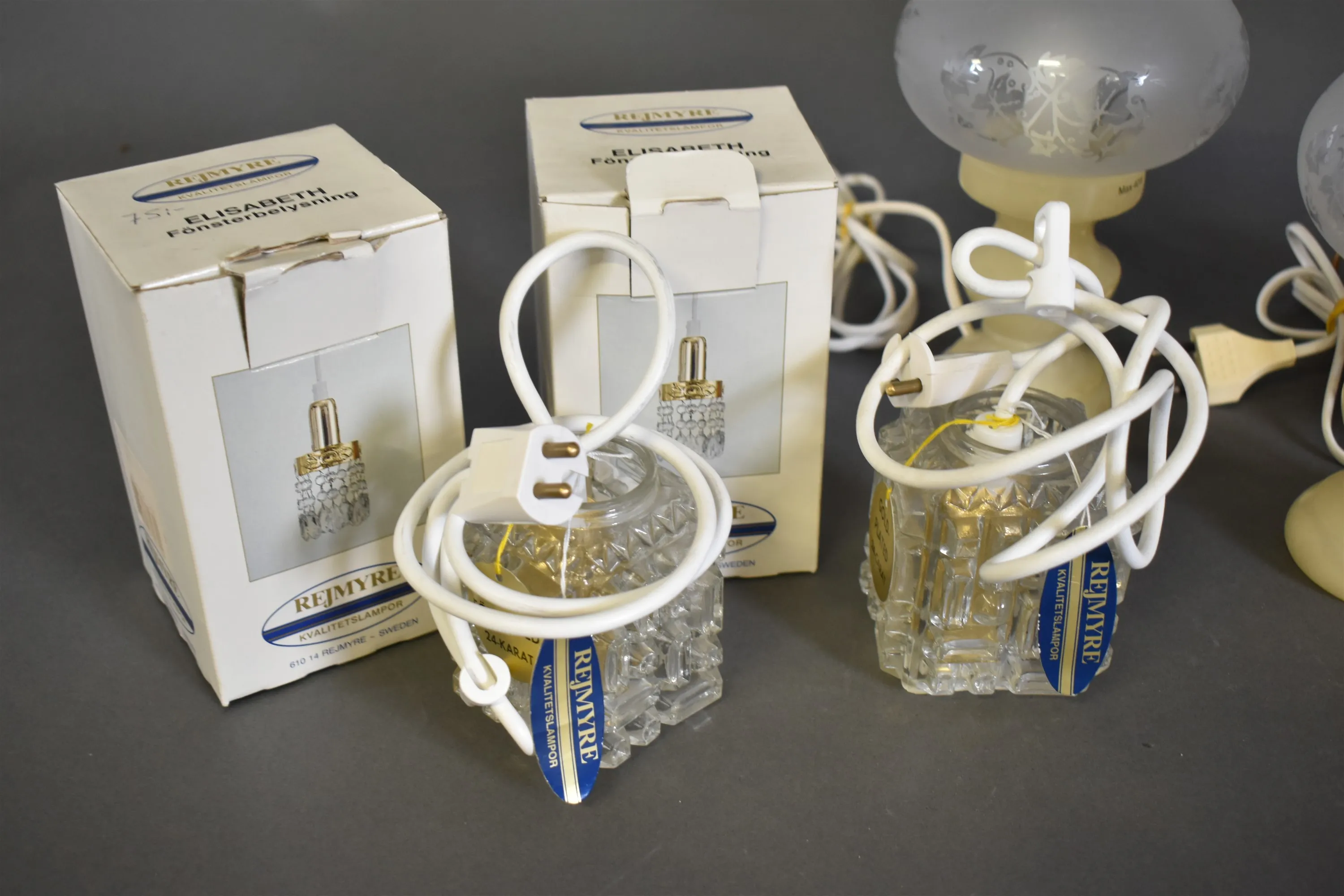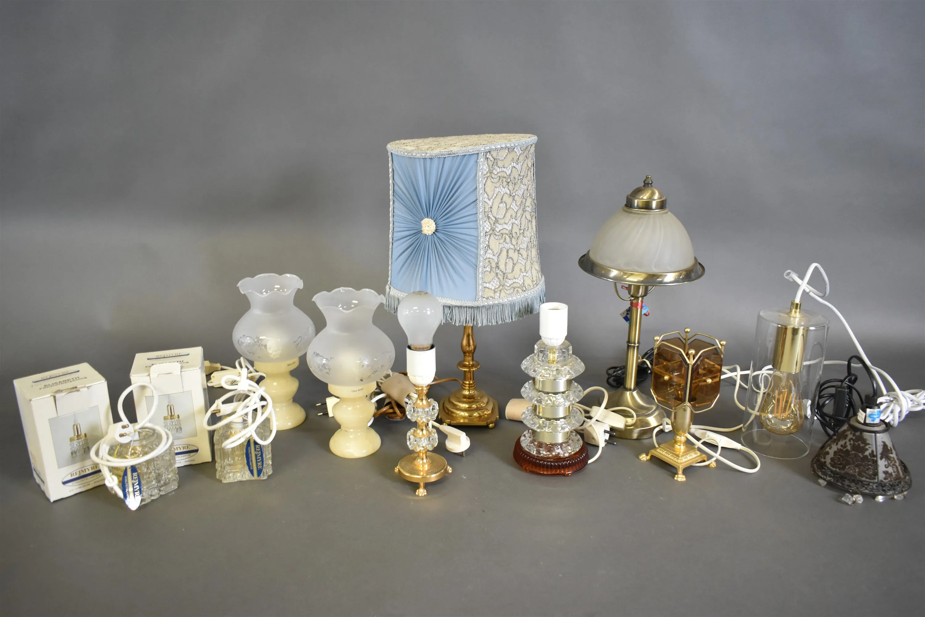 15181. Parti belysning; bordslampor och fönsterlampor, högsta höjd 45 cm