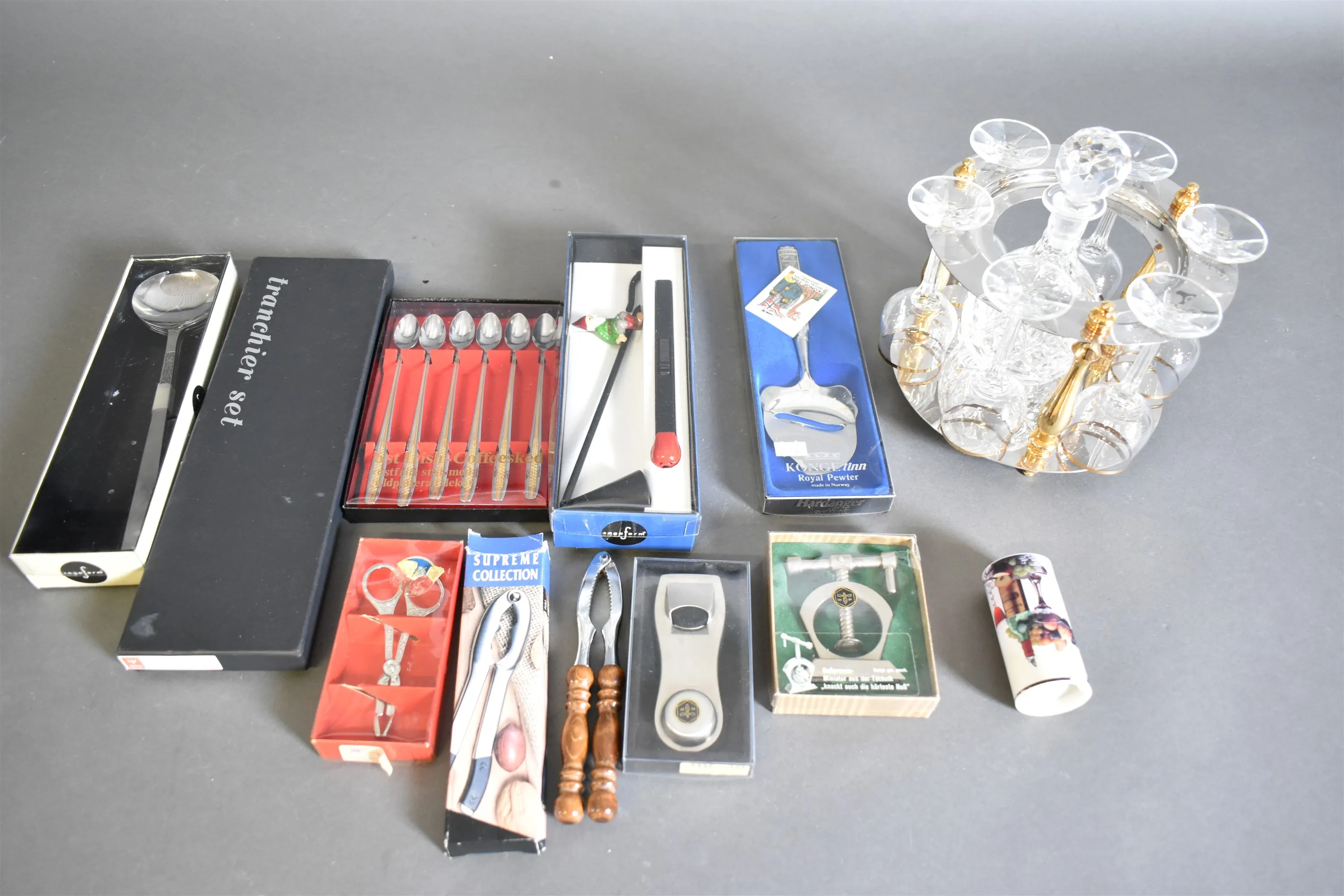 14536. Parti bestick i etui & likörset, högsta 23 cm Royal Dolton Cristal