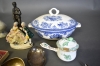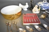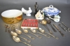 7382. Parti bestick nysilver och porslin bla cremekopp Herend, högsta höjd 18 cm