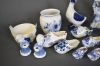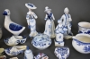10762. Parti blåvitt porslin bla figuriner, högsta höjd 24 cm