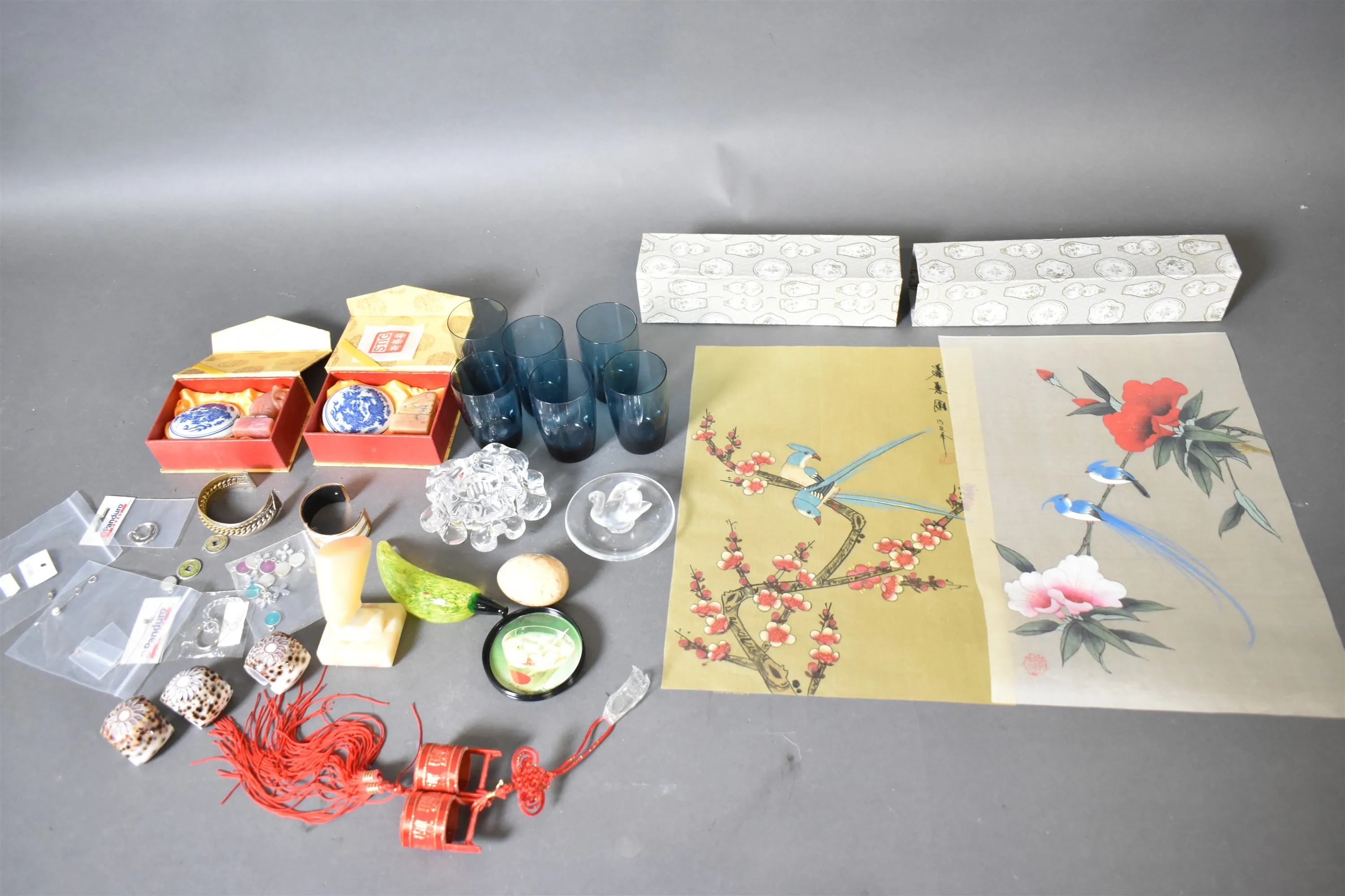 15626. Parti bl.a armband, glas, asiatiska föremål, längsta 30 cm