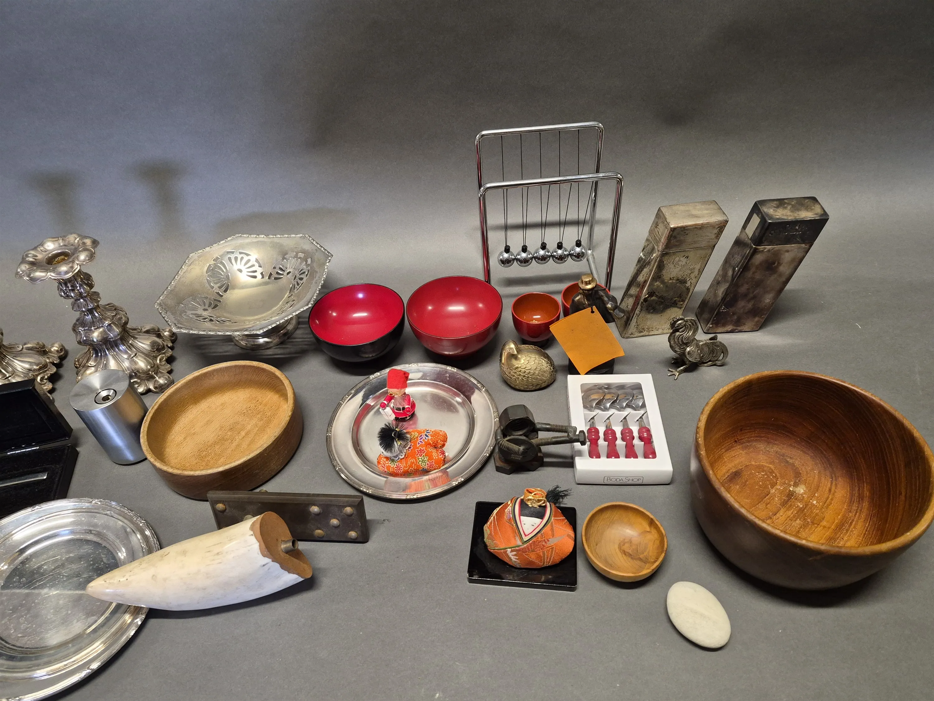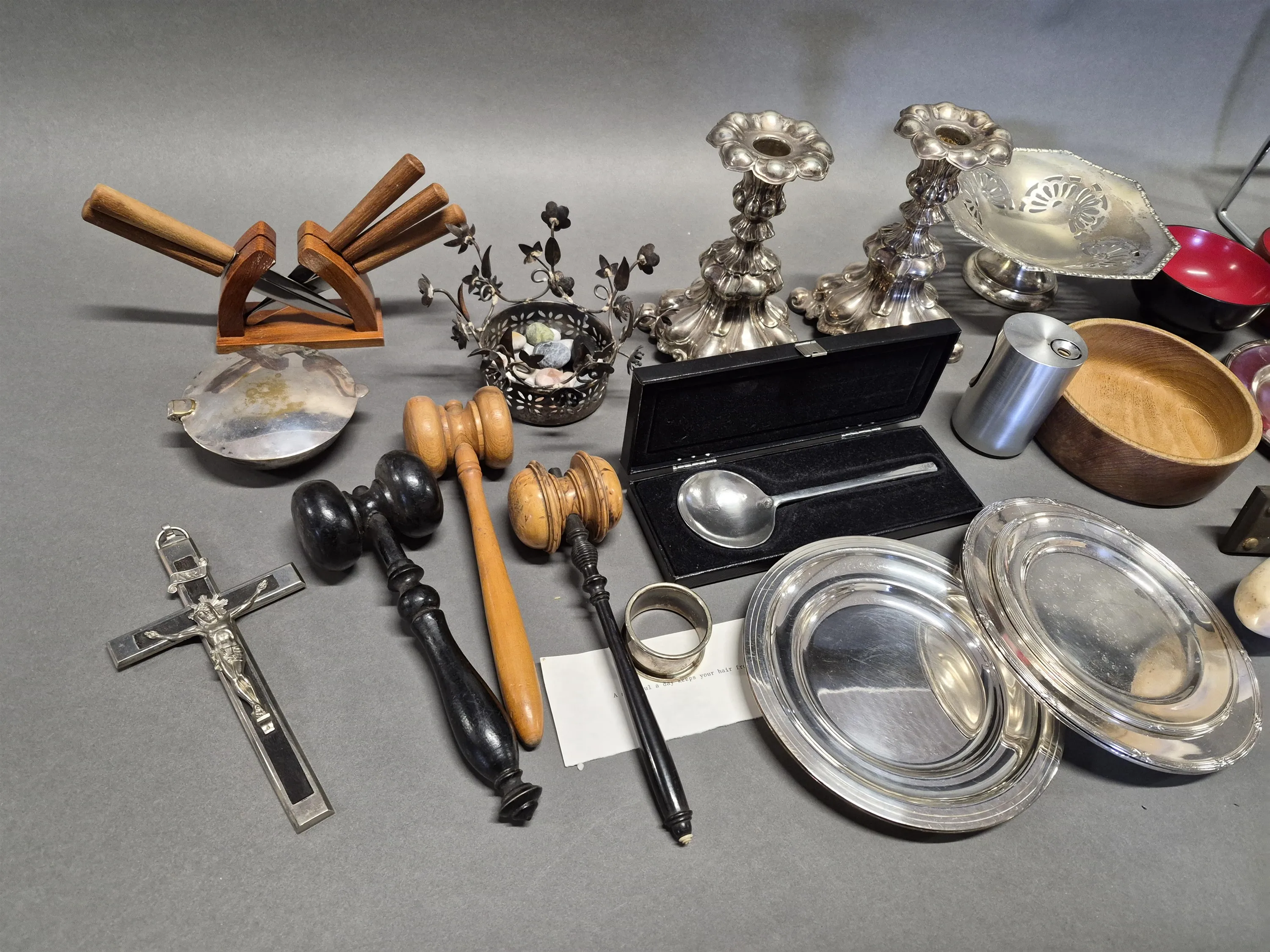 18829. Parti bl.a bestick, ljusstakar, högsta 15 cm
