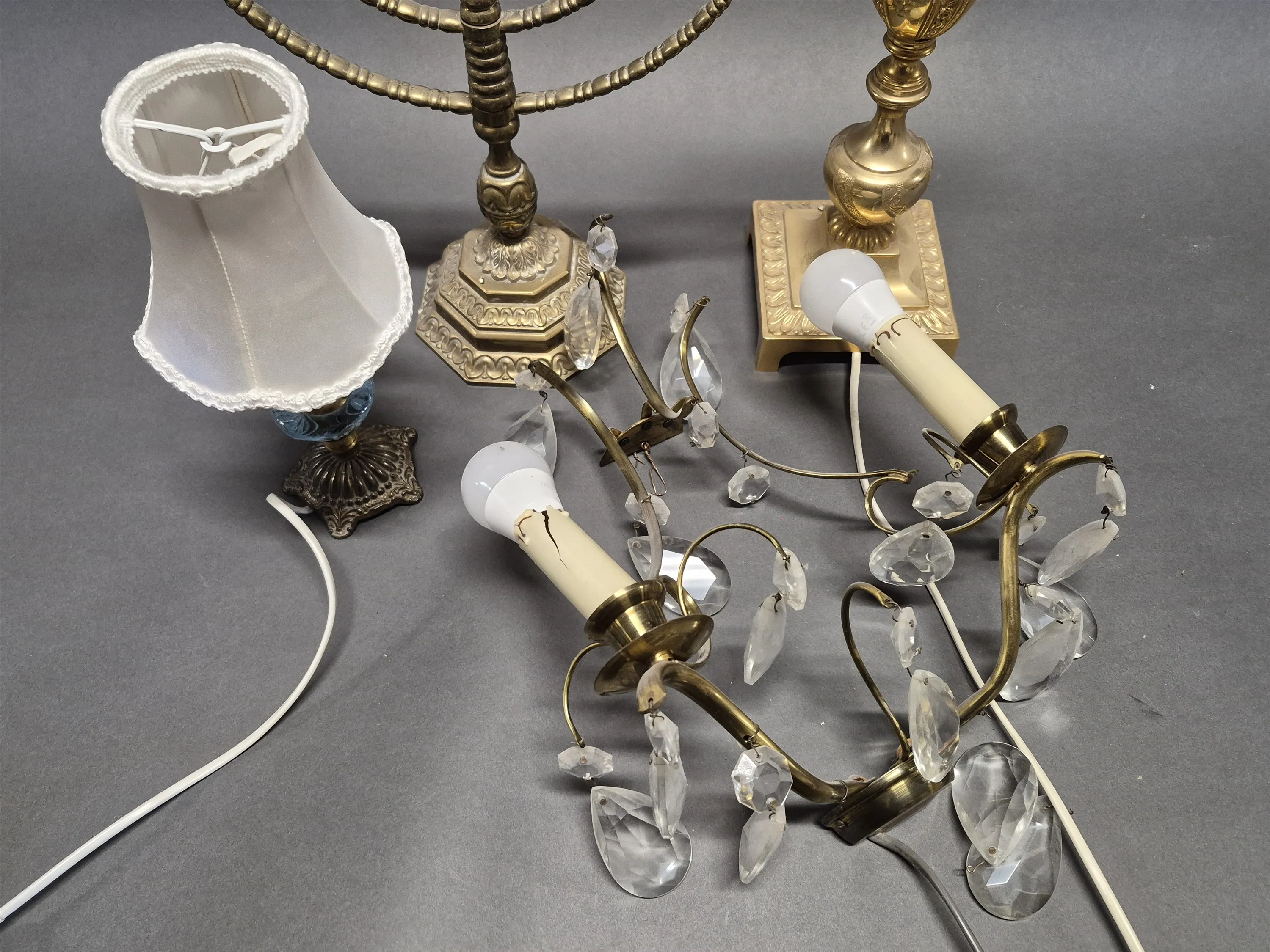 16977. Parti bl.a bordslampa & 7-armad ljusstake högsta 40 cm, lamphållare defekt
