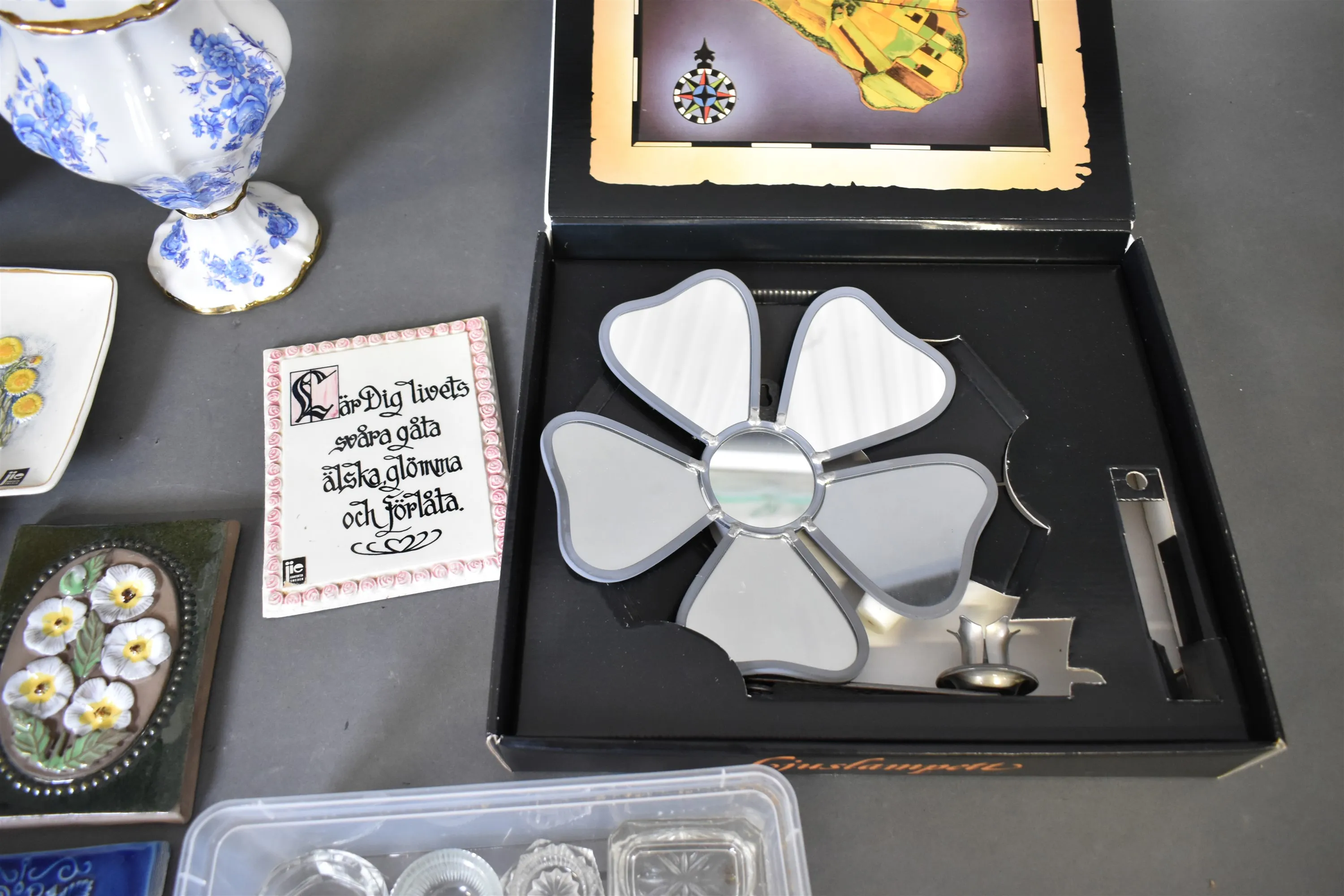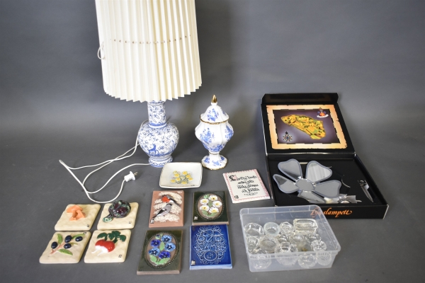 10426. Parti bl.a Bordslampa och keramiktavlor JIE, högsta höjd 40 cm