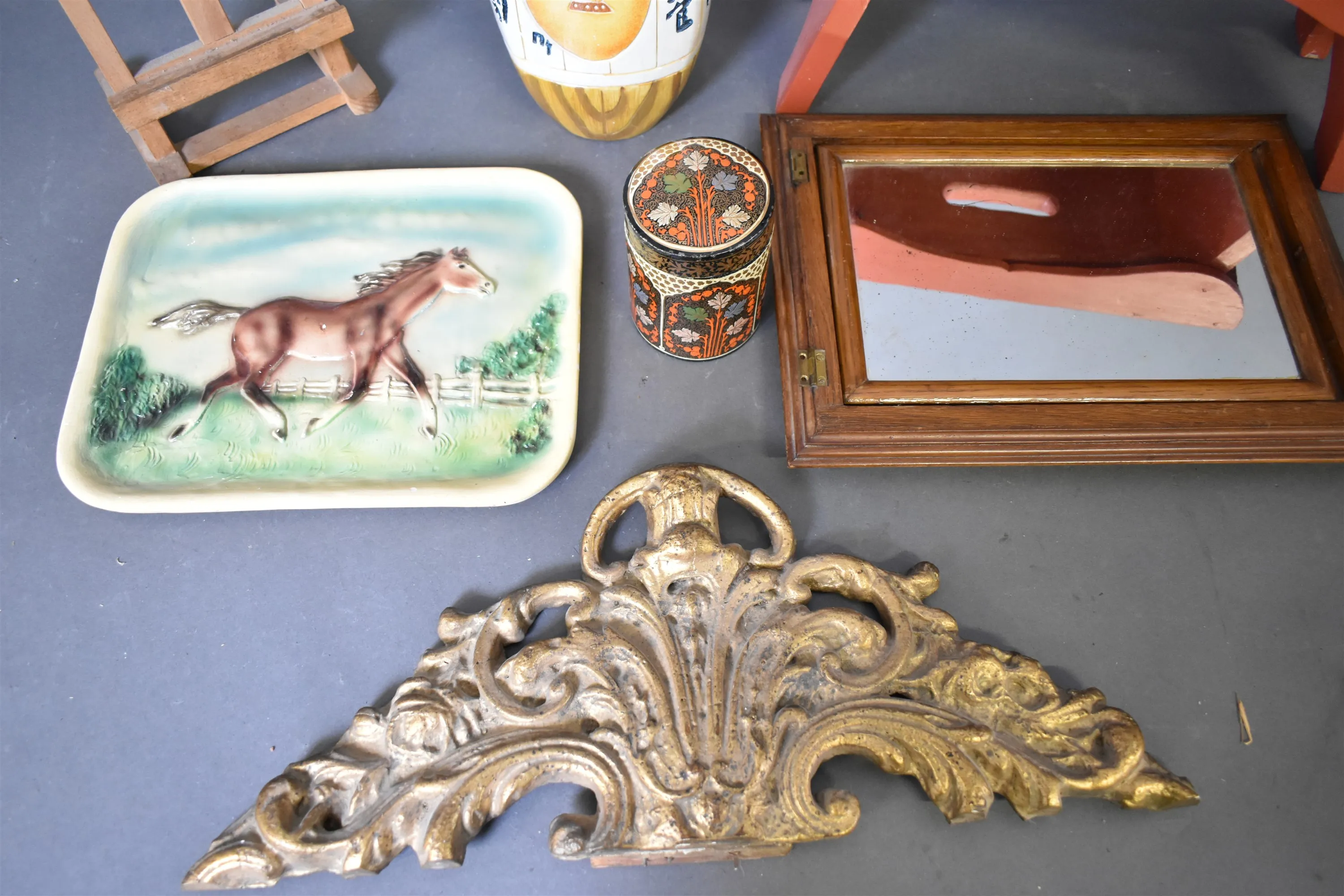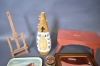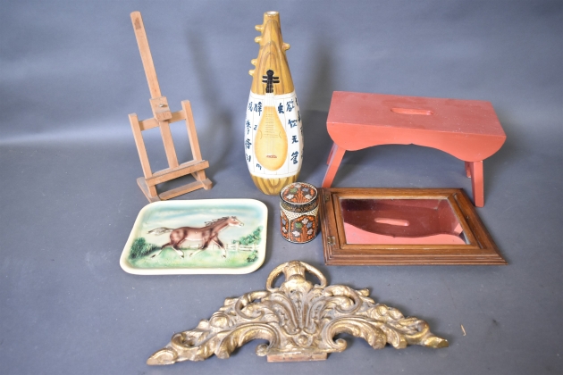 16068. Parti bl.a bordsstafli, pall & krön högsta 45 cm