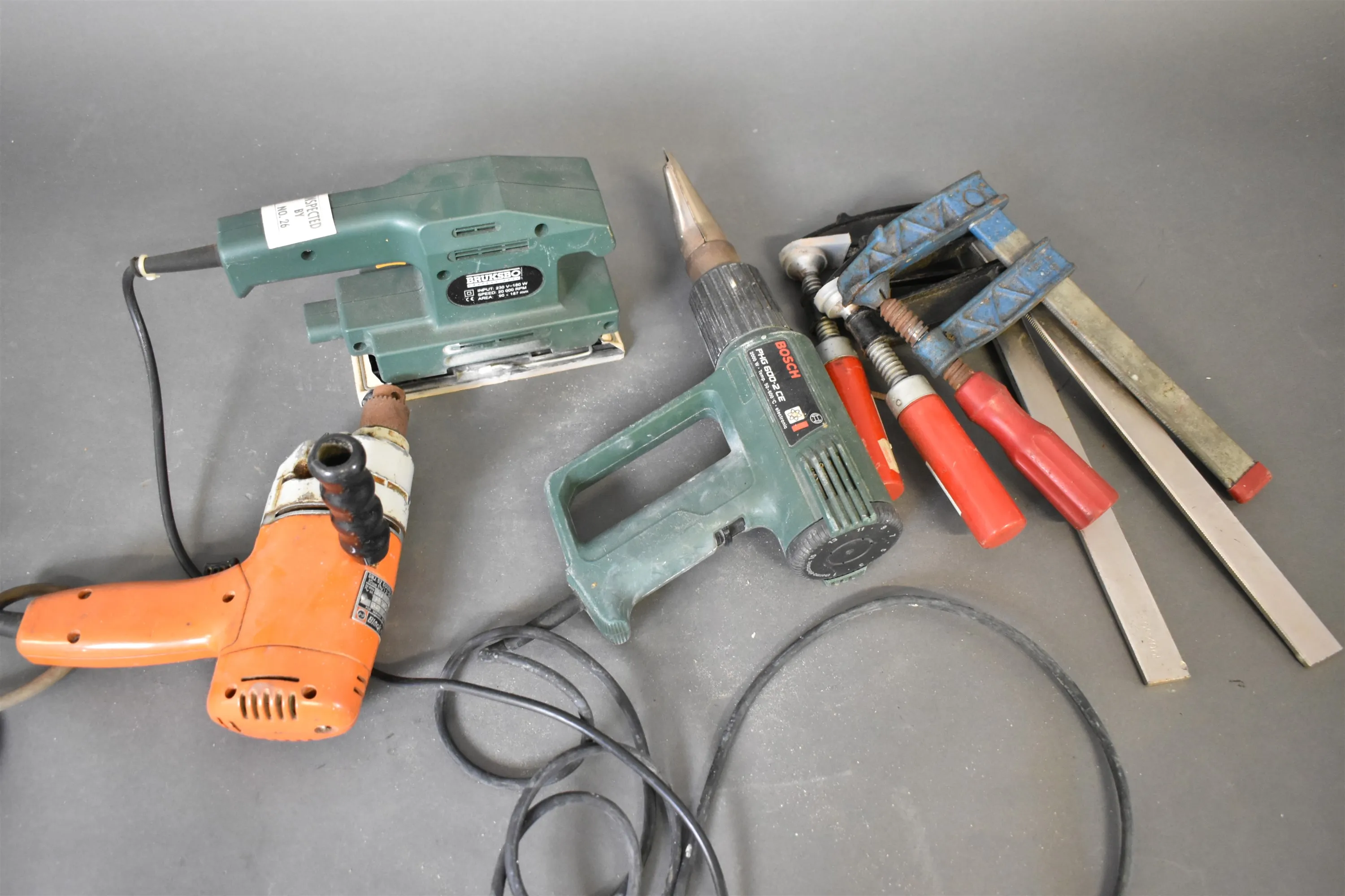 13034. Parti bl.a borrmaskin, limknektar & slipmaskin. längsta 40 cm