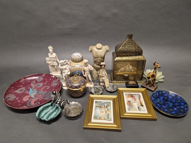 18270. Parti bl.a figuriner, fat & ljuslykta, högsta 38 cm
