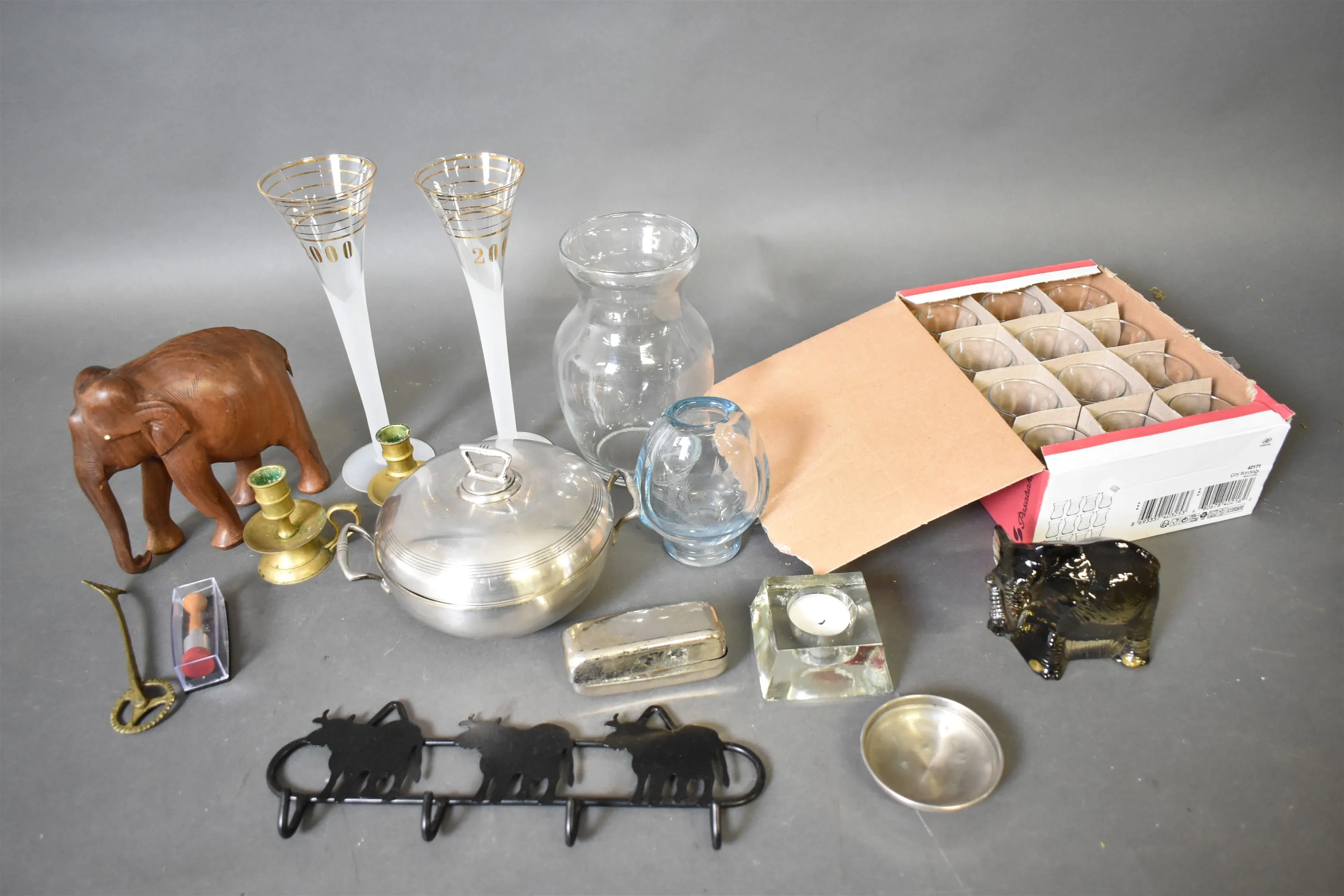 16105. Parti bl.a glas, metall, högsta 25 cm