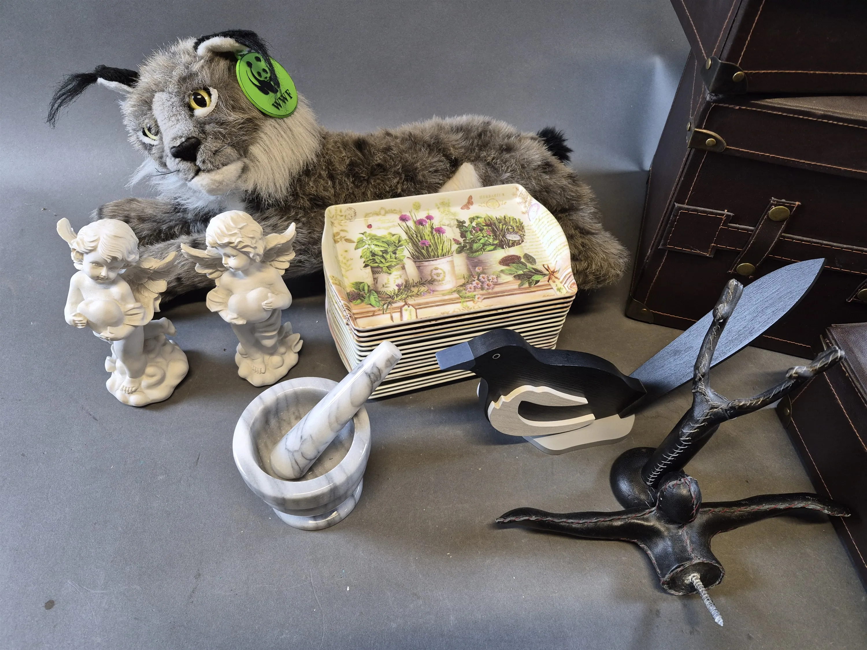 19787. Parti bl.a kramdjur WWF, lådor läder, högsta 27 cm