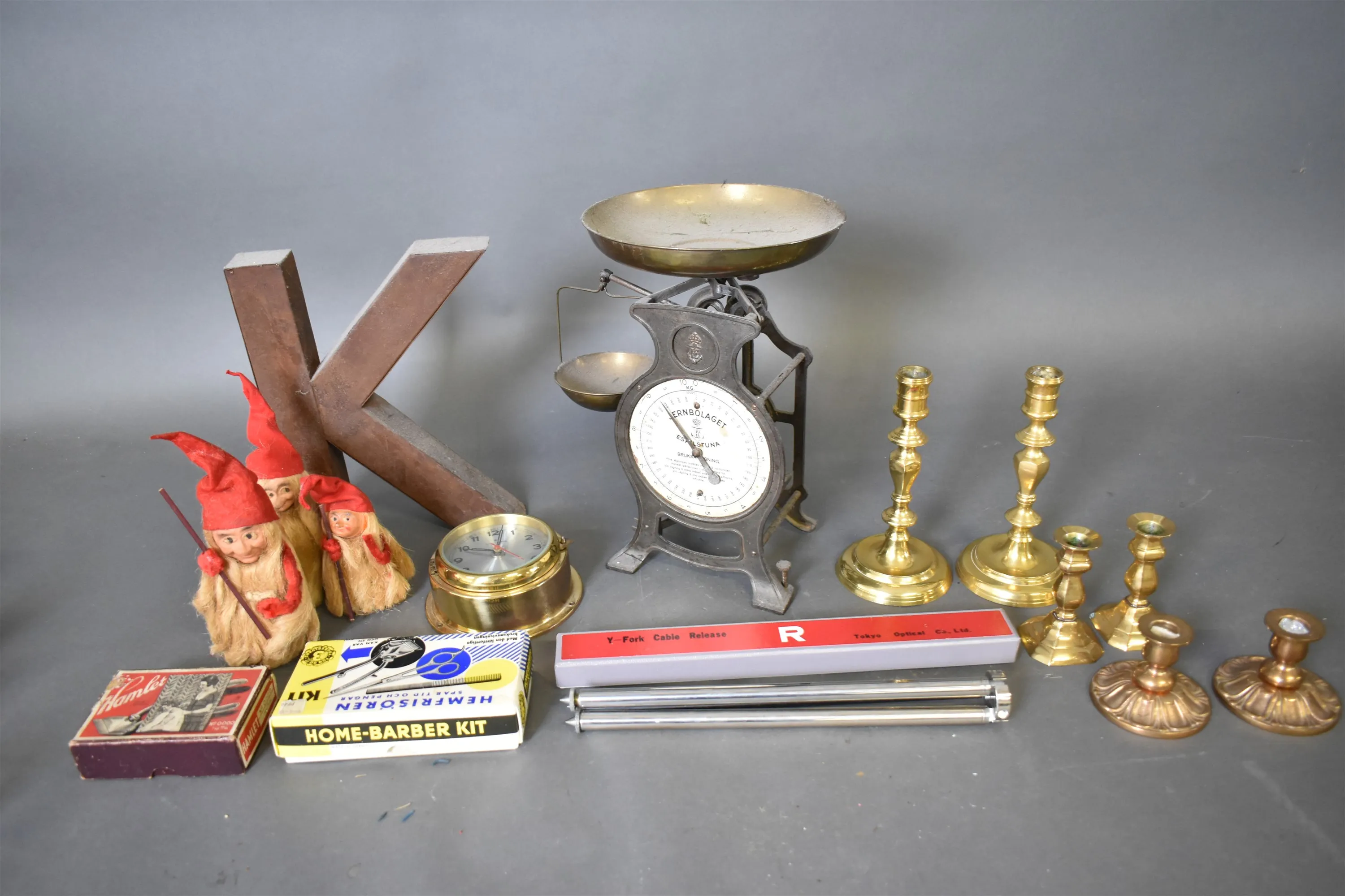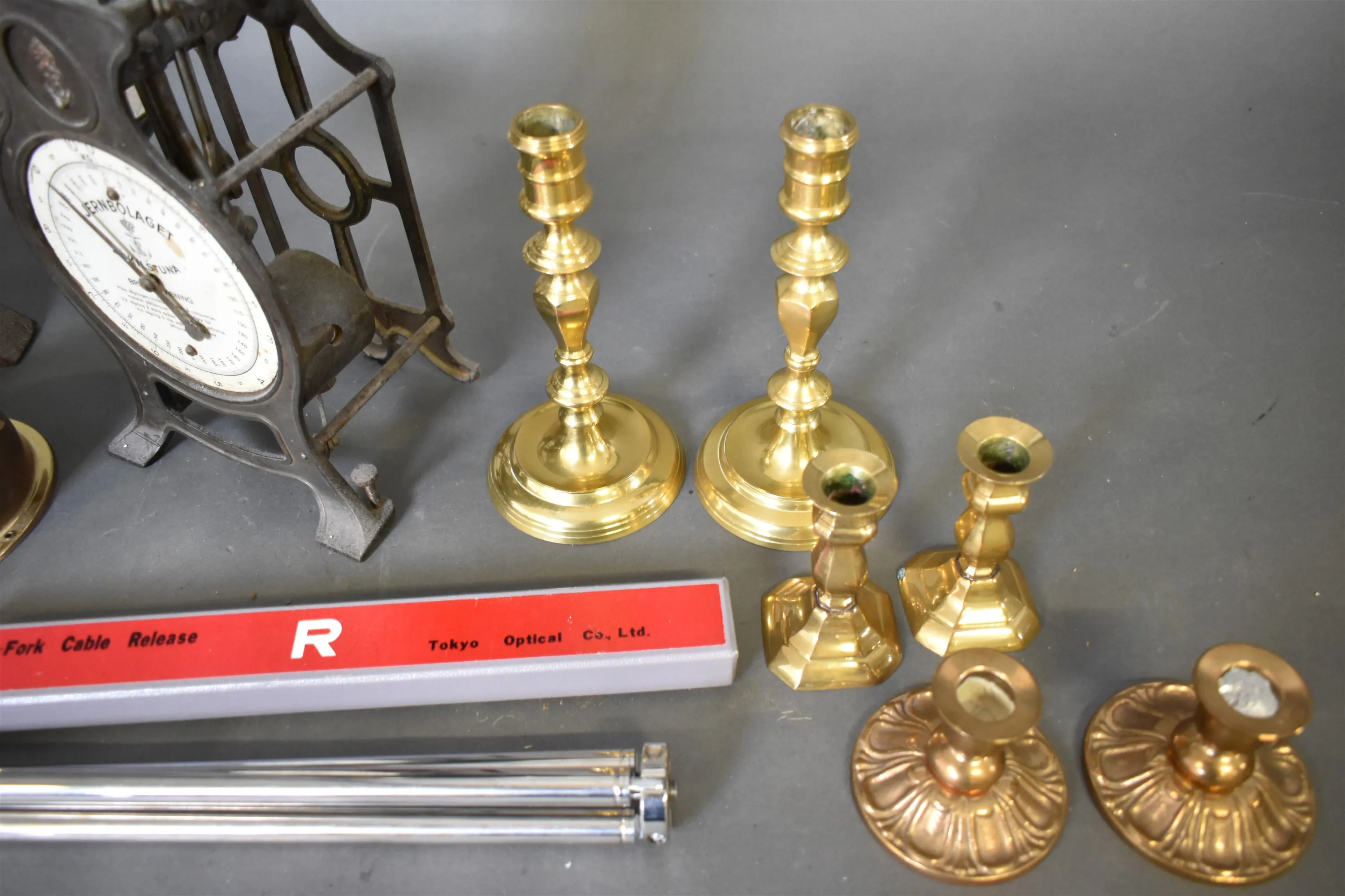 13788. Parti bl.a ljusstakar & köksvåg, högsta 33 cm