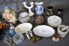 8553. Parti bl.a ljusstakar, porslin trälampa högsta 40 cm