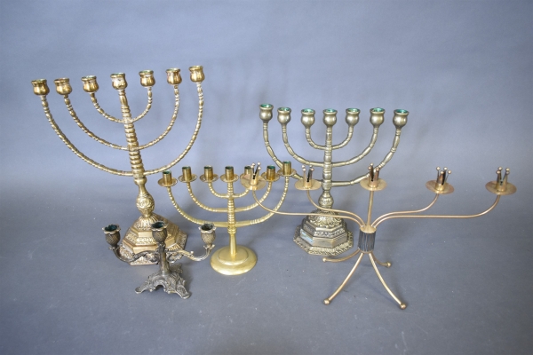 9088. Parti bl.a mässingsljusstakar bl.a 7 armade högsta 36 cm