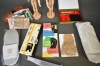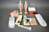 10199. Parti bl.a målartillbehör, innetofflor högsta 30 cm