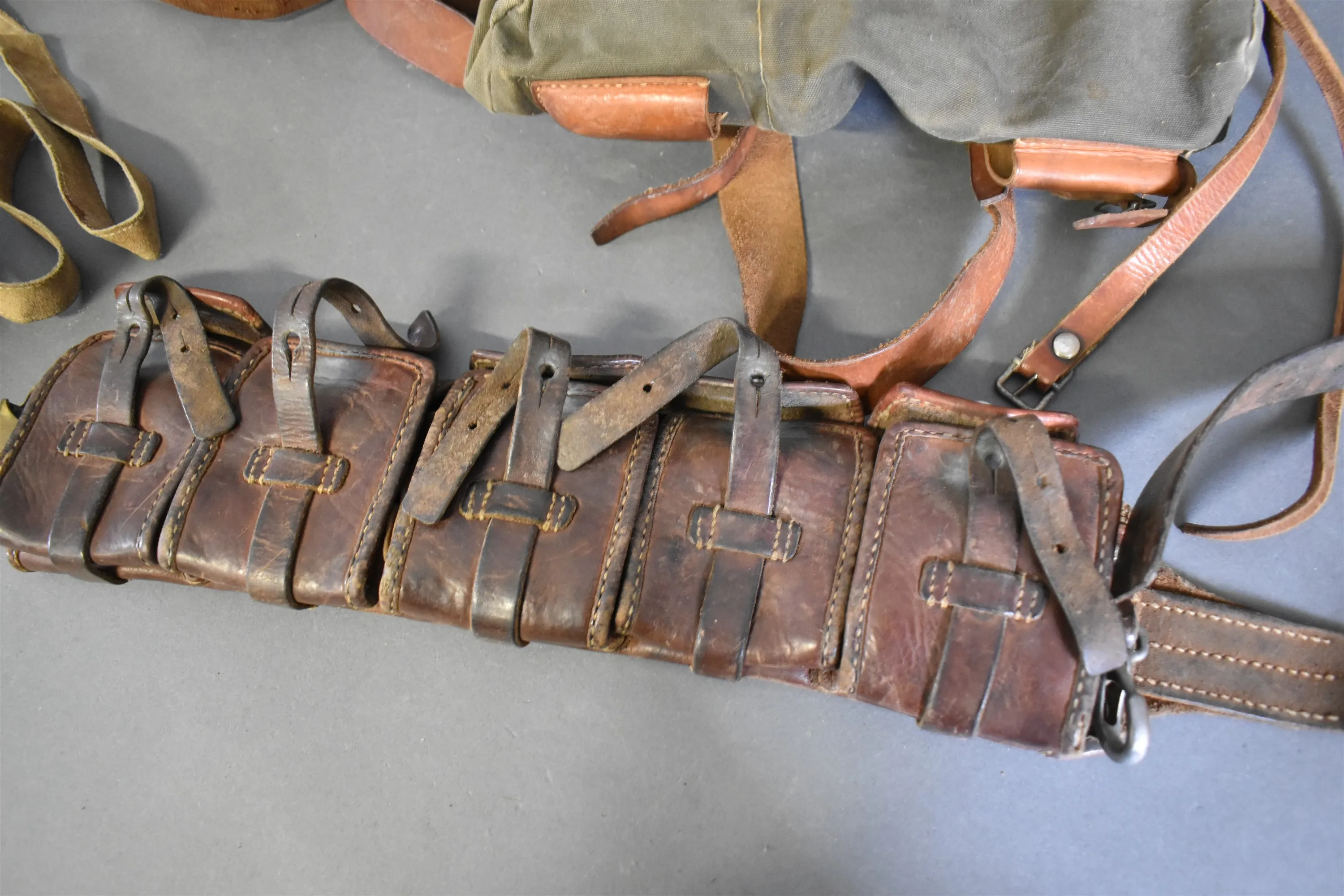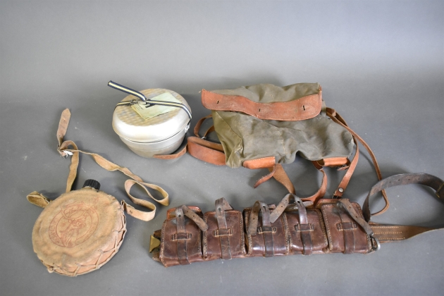 12182. Parti bl.a militärbälte och utekök