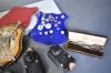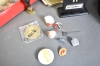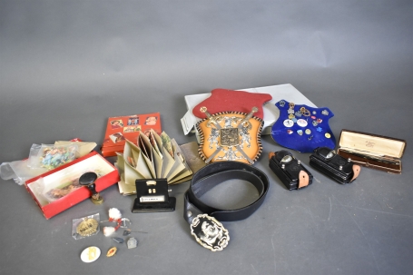 3164. Parti bl.a märkessköldar, rakkniv och äldre ficklampor