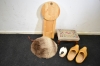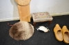 7593. Parti bl.a Pall, trätofflor och träanka,längd på pall 30 cm