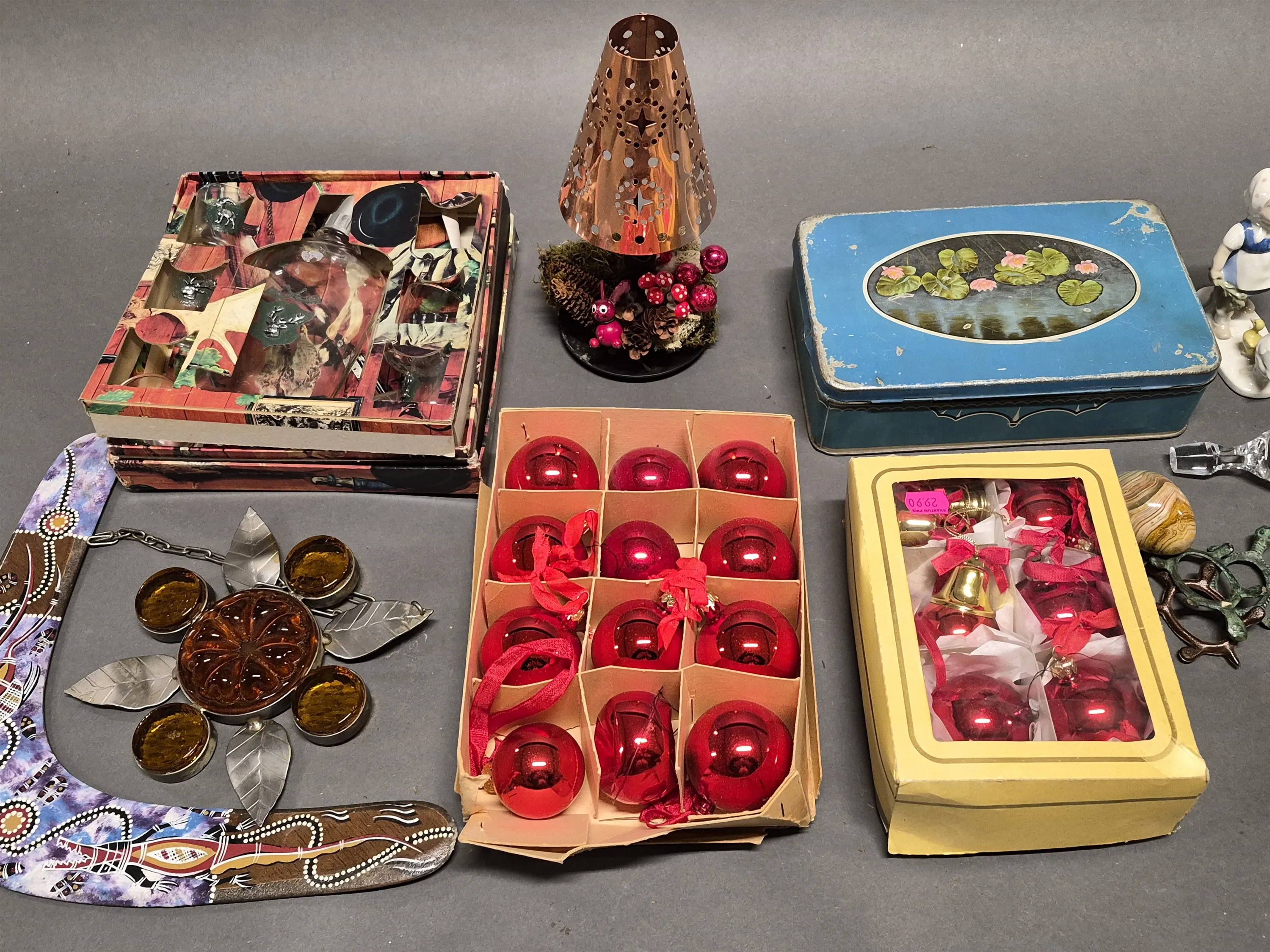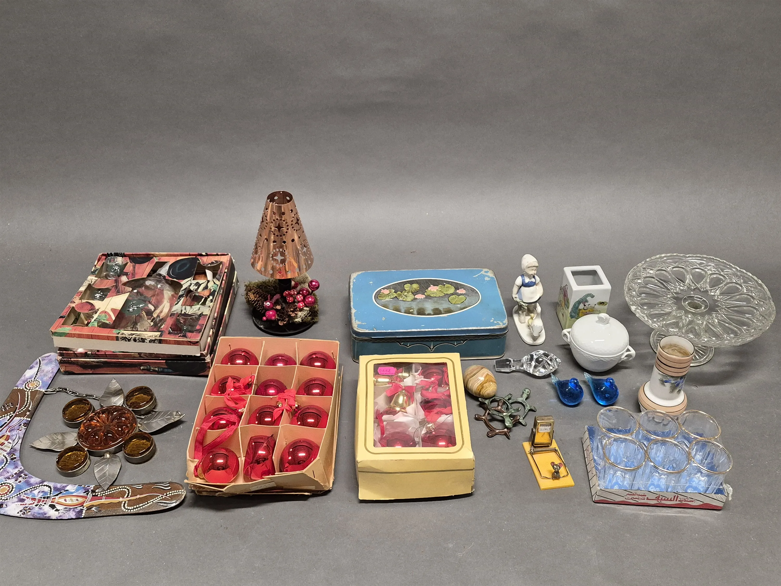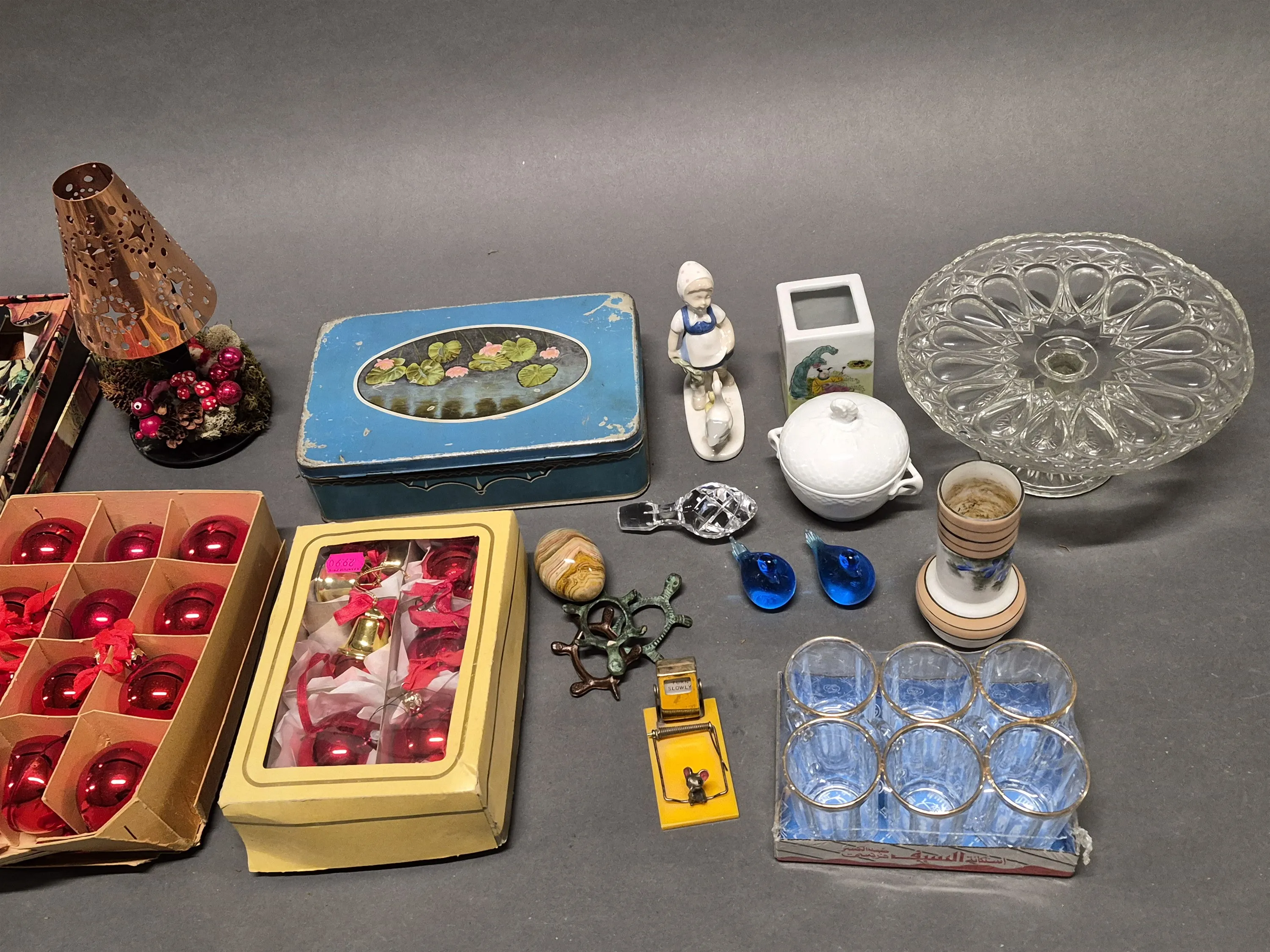 18541. Parti bl.a plåtburk & ljushållare med skärm högsta 27 cm