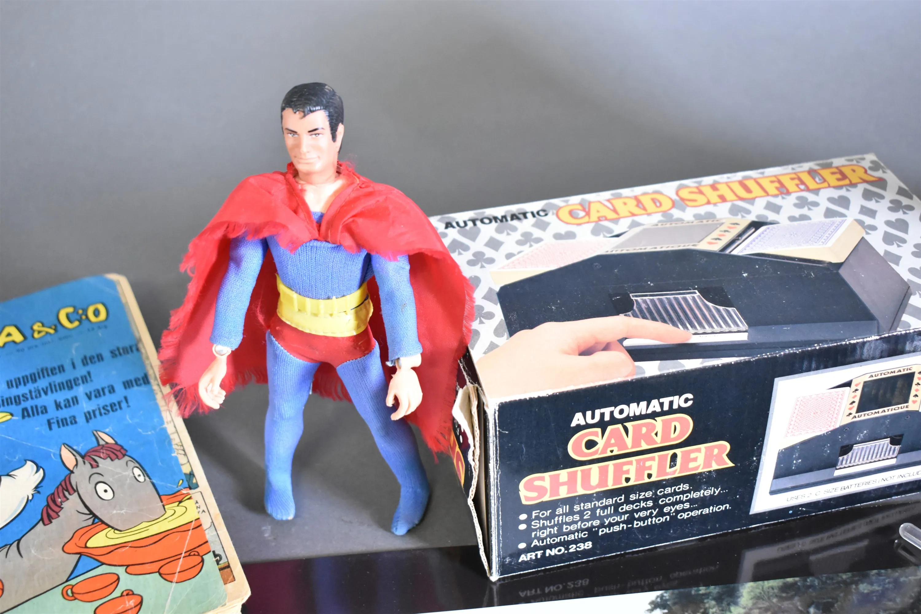 14730. Parti bl.a Pussel, inbunden Kalle Anka 1961 och Stålmannen docka