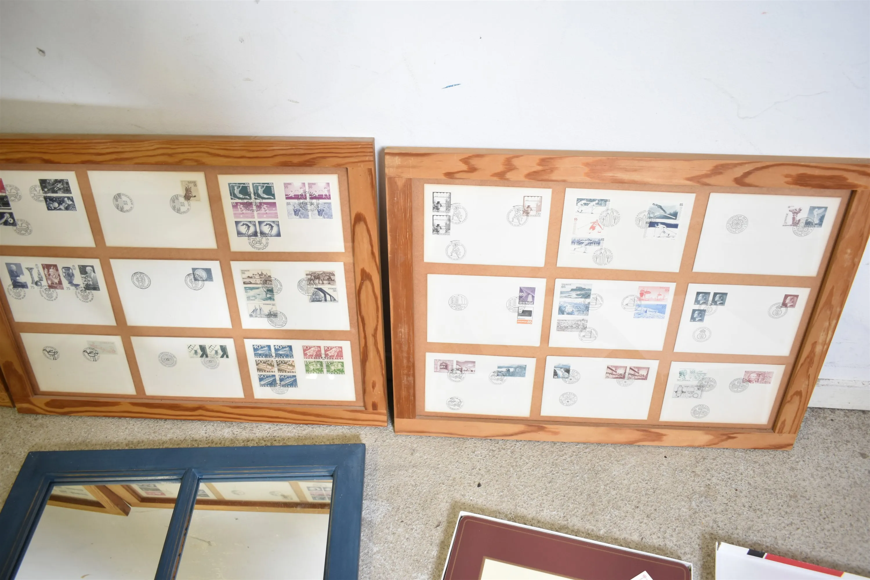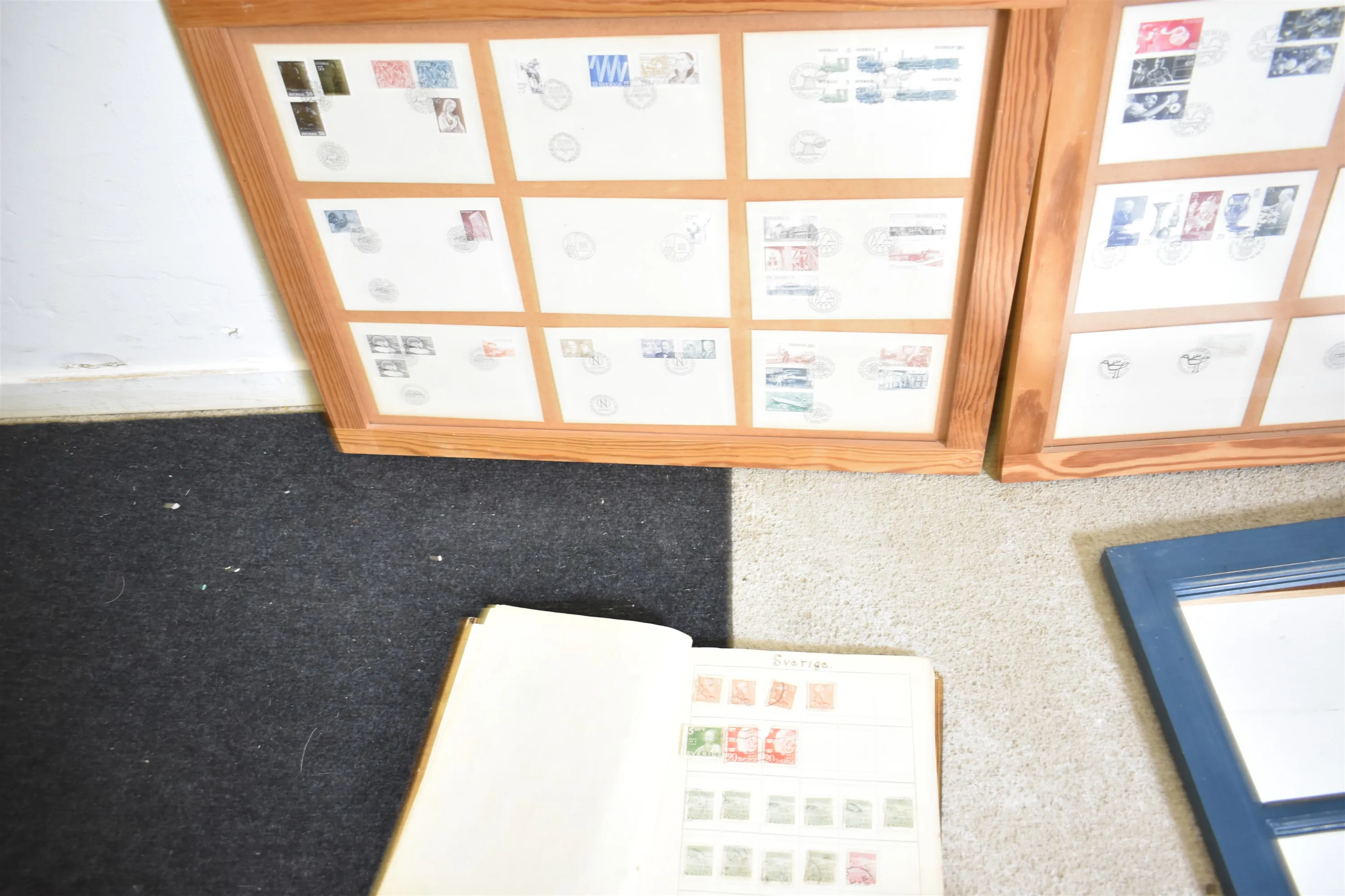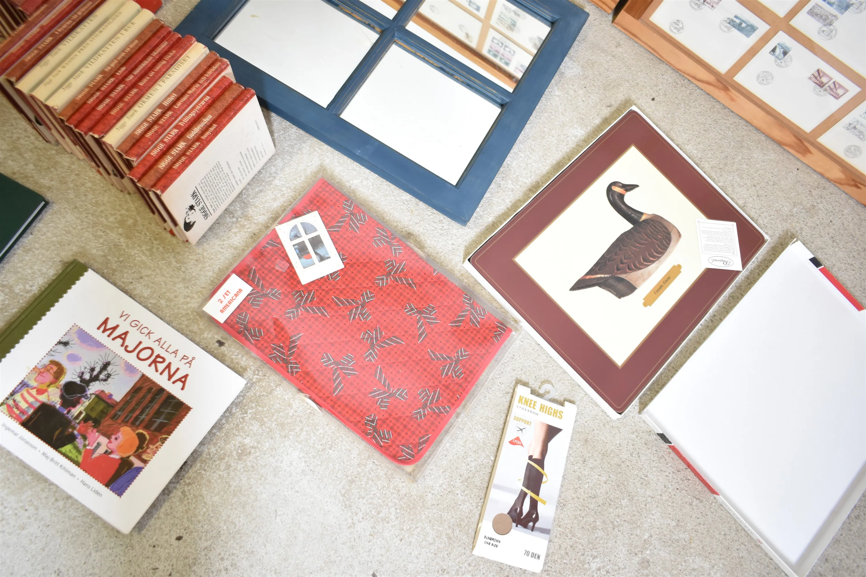 16276. Parti bl.a ramar, böcker Sigge Stark & frimärken största mått 58 x 45 cm