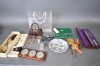 13405. Parti bl.a ritset, plastbag, handspegel & borste, högsta 33 cm