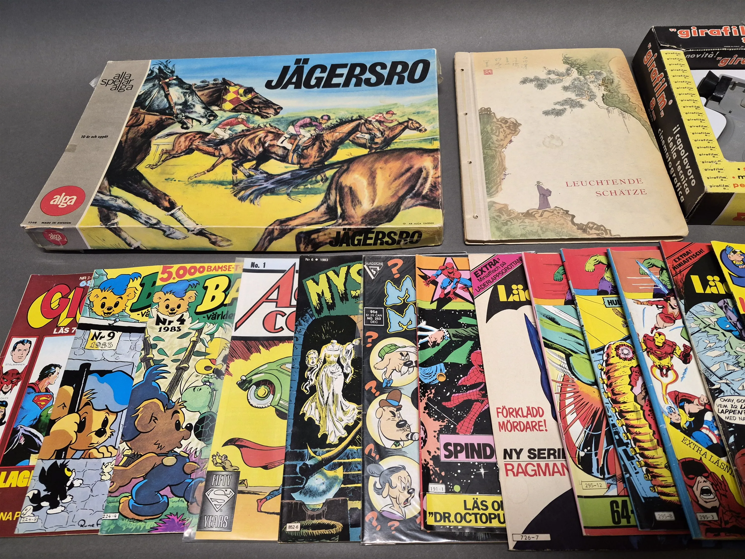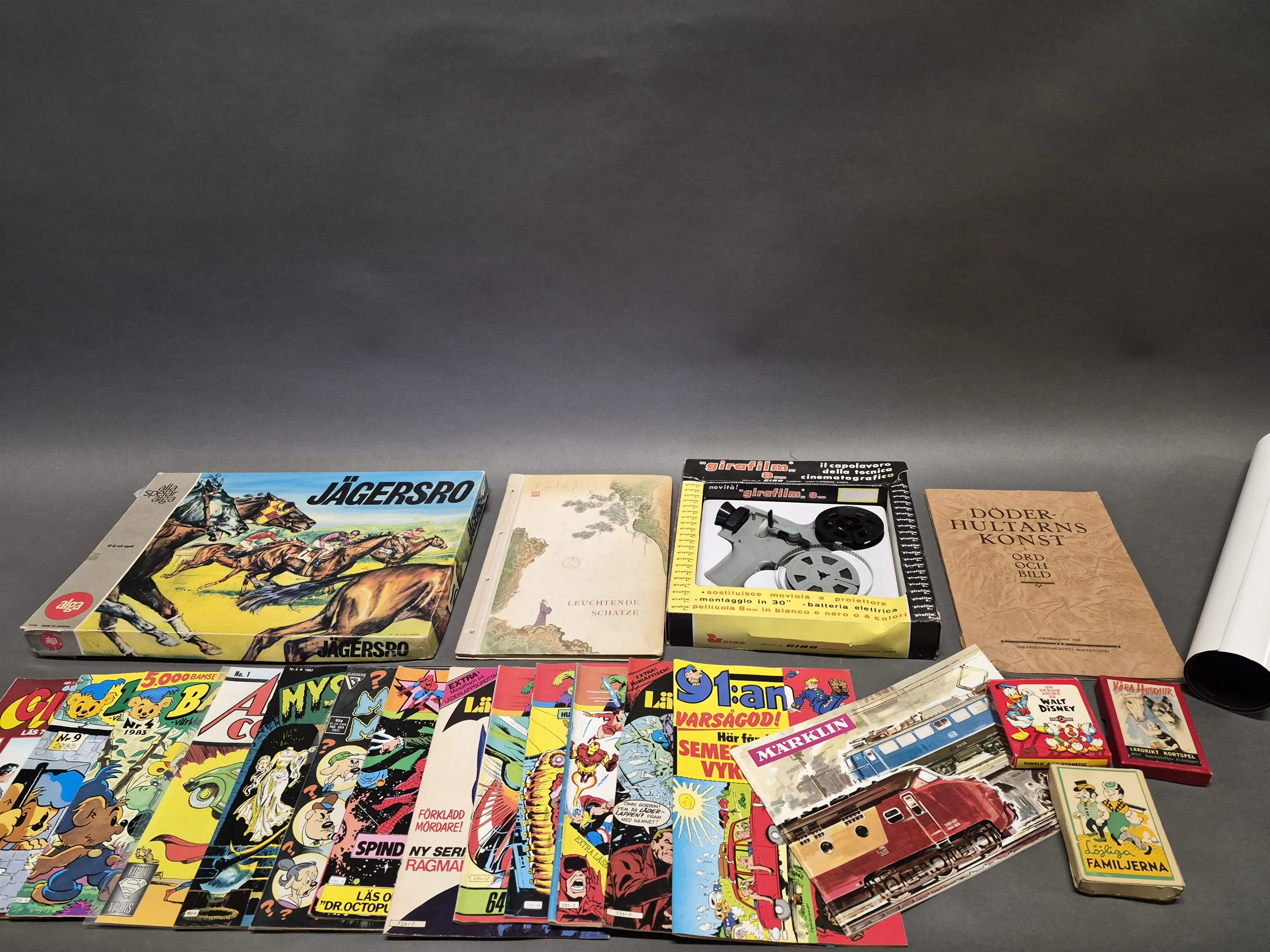 19583. Parti bl.a Serietidningar, Volvo Affisch och Sällskapsspel Jägersro