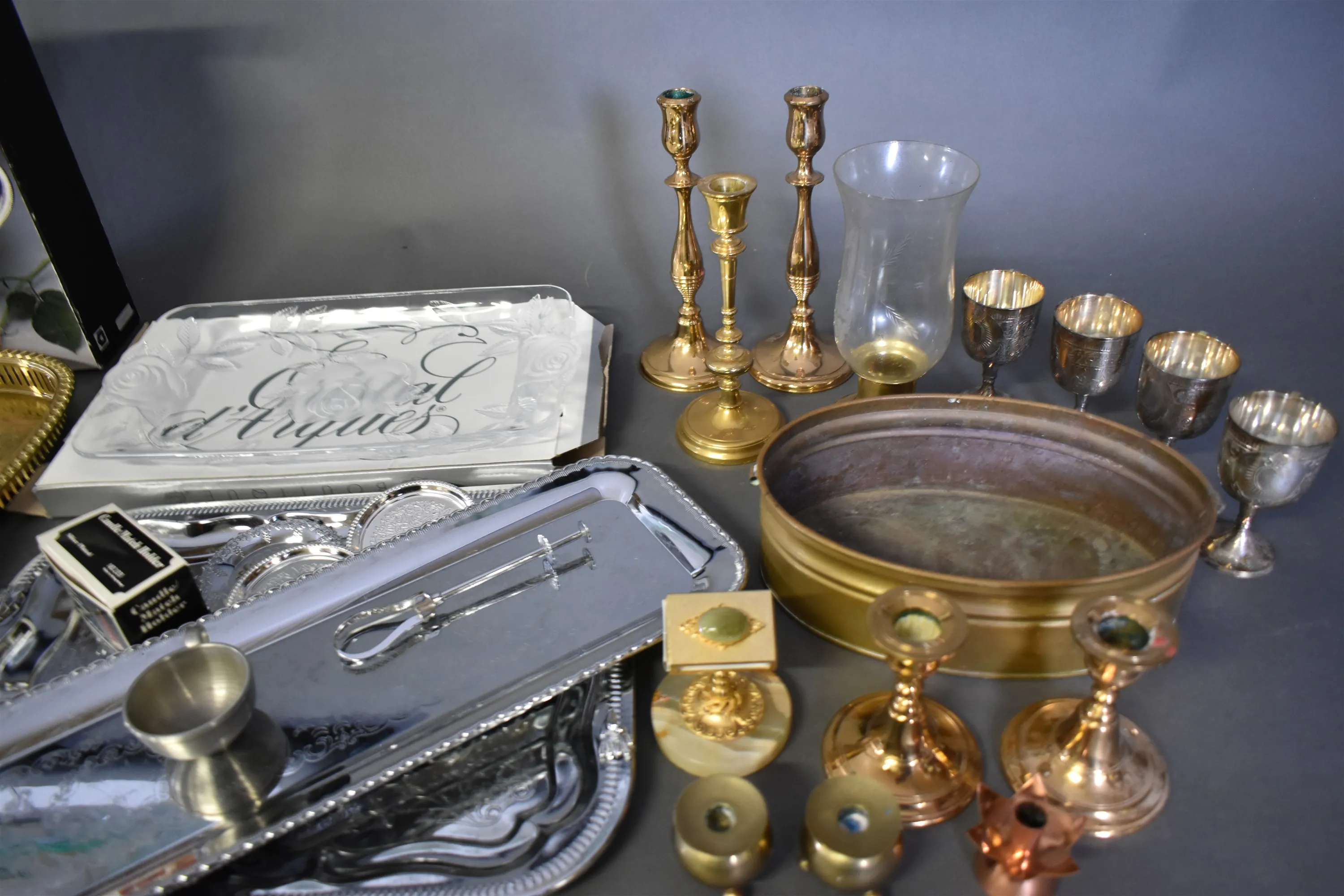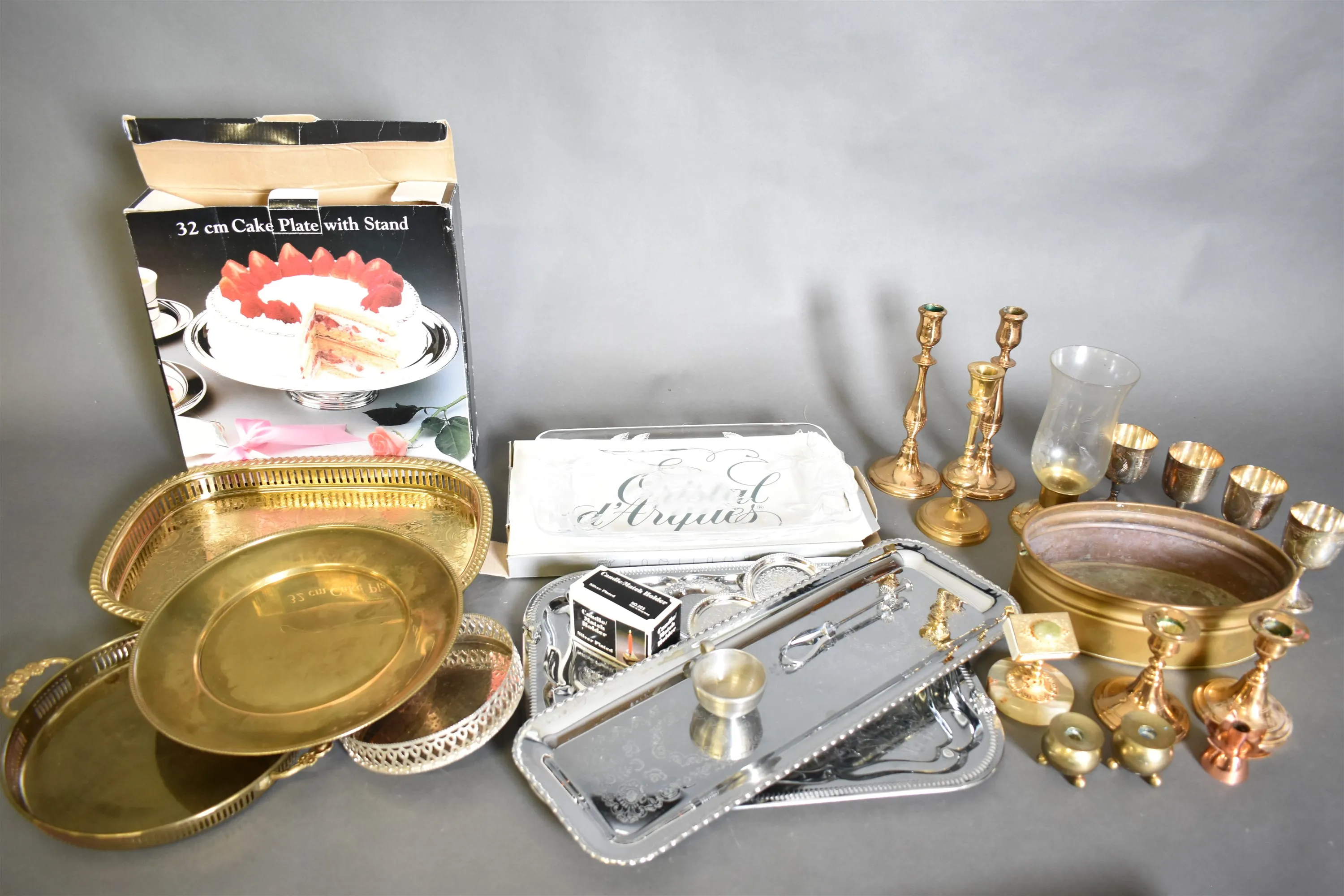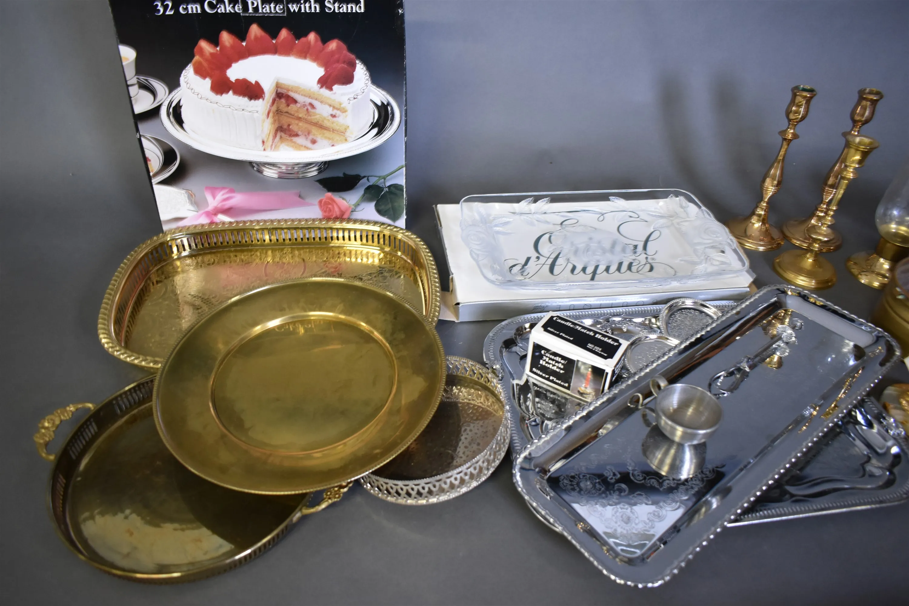 6902. Parti bl.a serveringsbrickor / ljusstakar längsta 50 cm