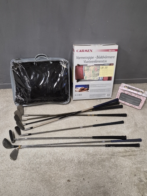 17004. Parti bl.a sitsskydd, golfklubbor längsta 108 cm