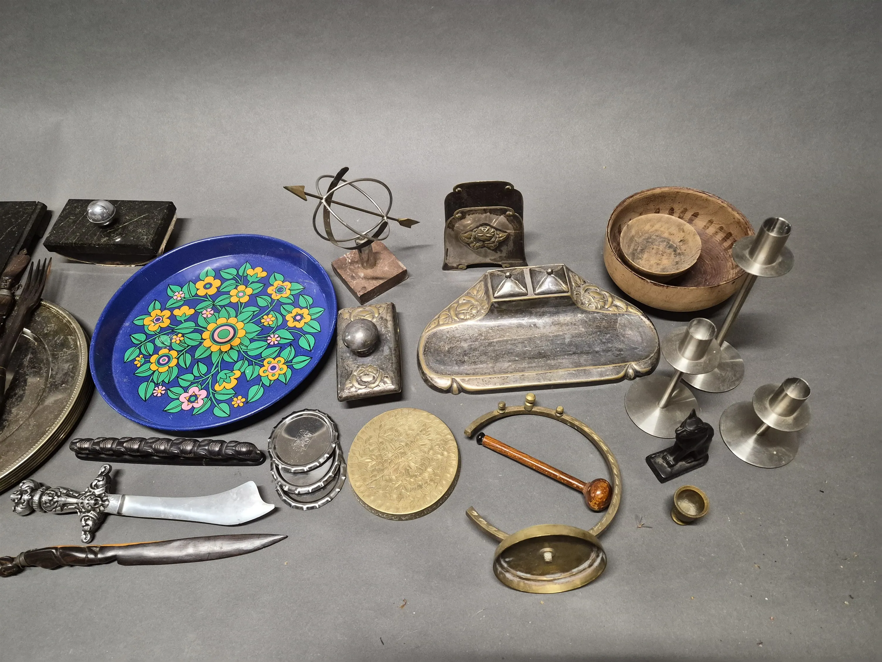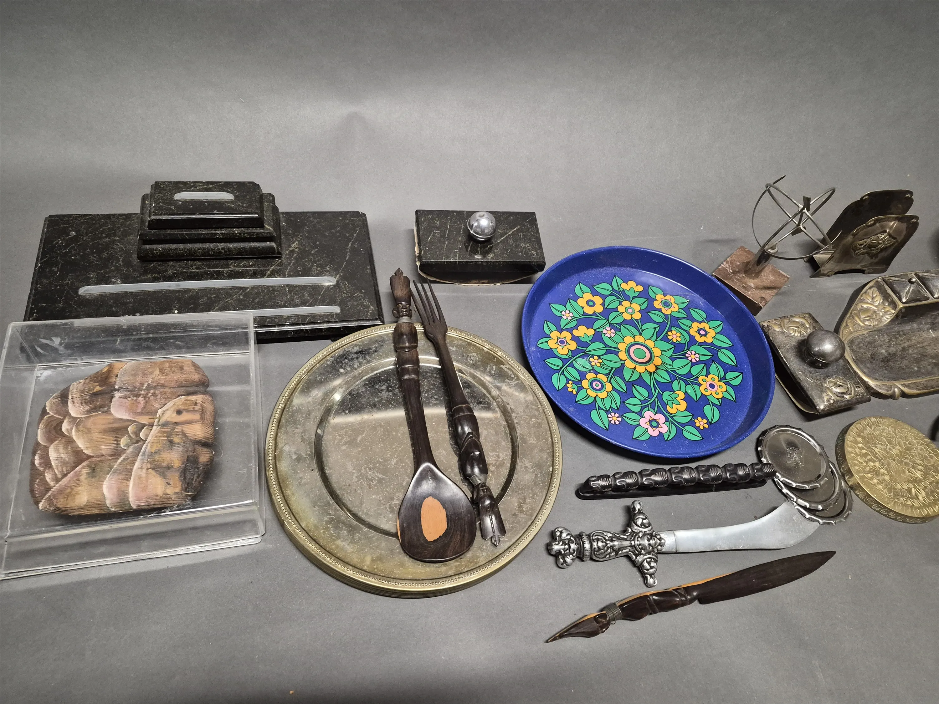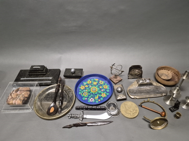 18043. Parti bl.a skrivbordsset, metall & marmor längsta 35 cm