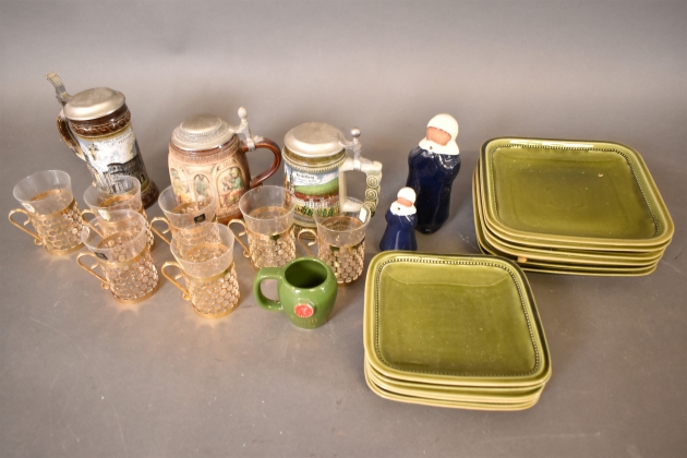 14551. Parti bl.a tallrikar Höganäs & stop med tennmontage högsta 20 cm