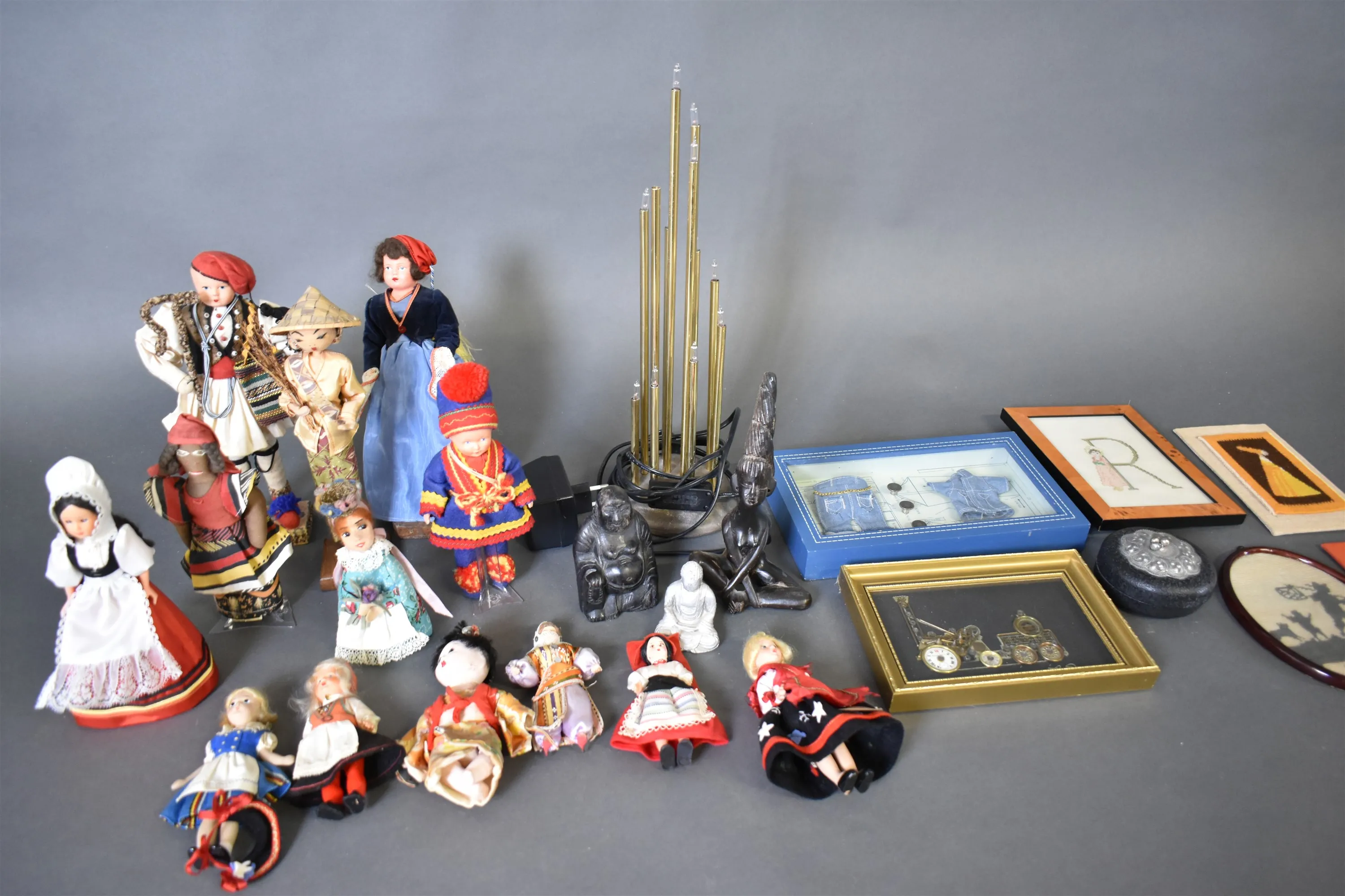 7647. Parti bl.a tavlor, dockor, lampa Gnosjö högsta 42