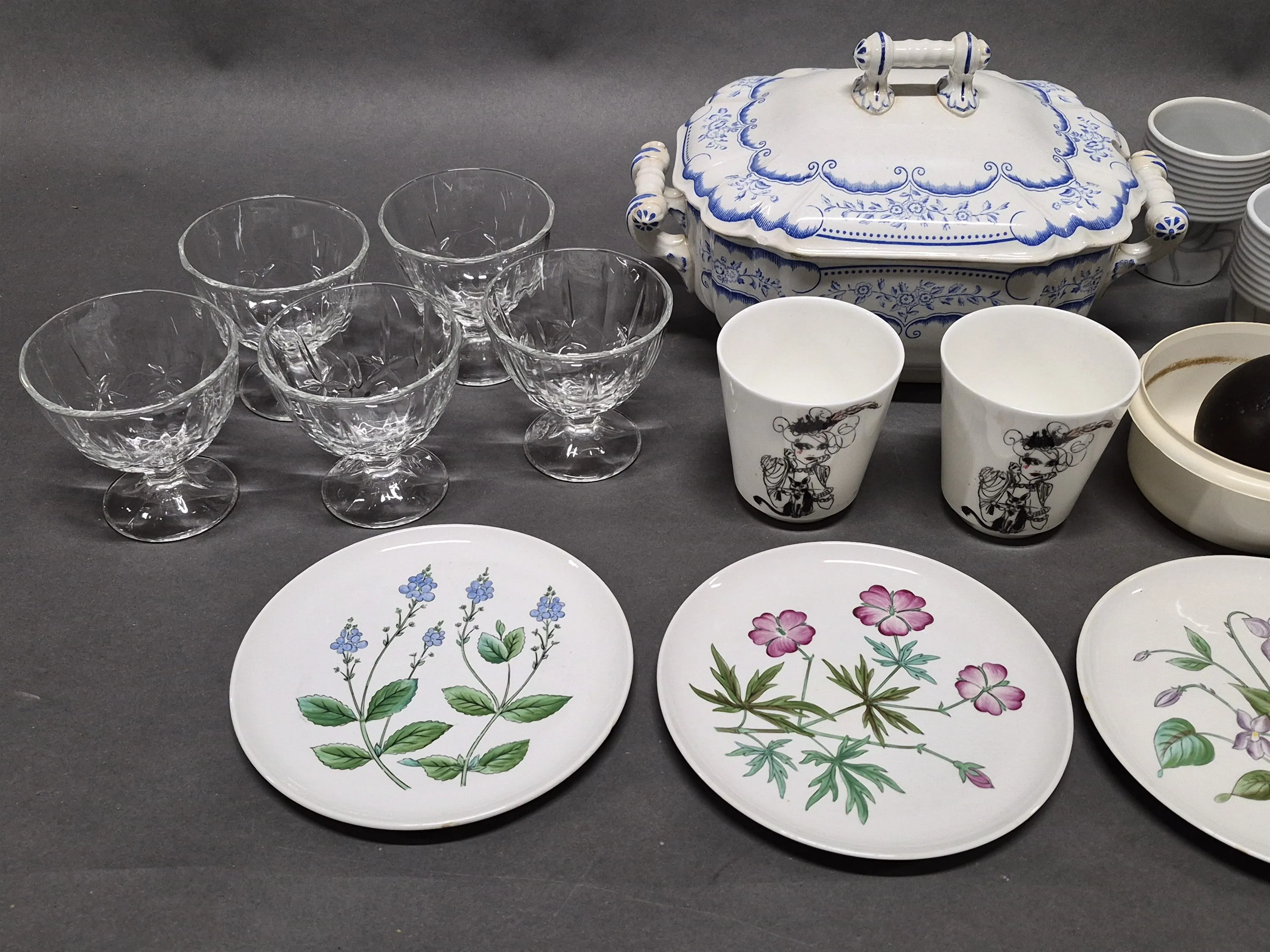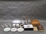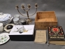 17408. Parti bl.a terrin, wiskeyglas & ljusstake mässing, högsta 28 cm
