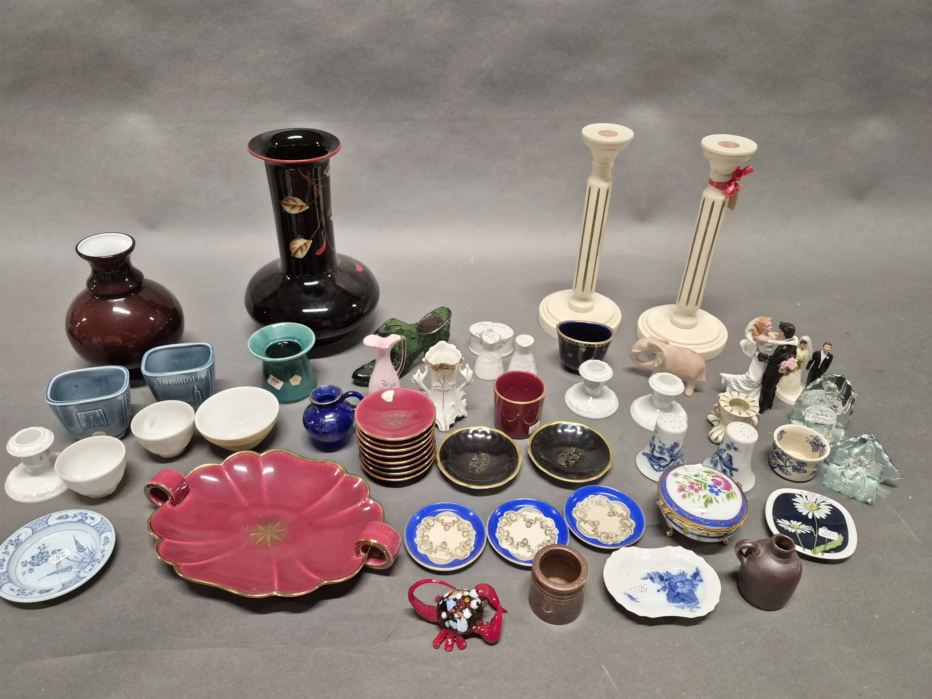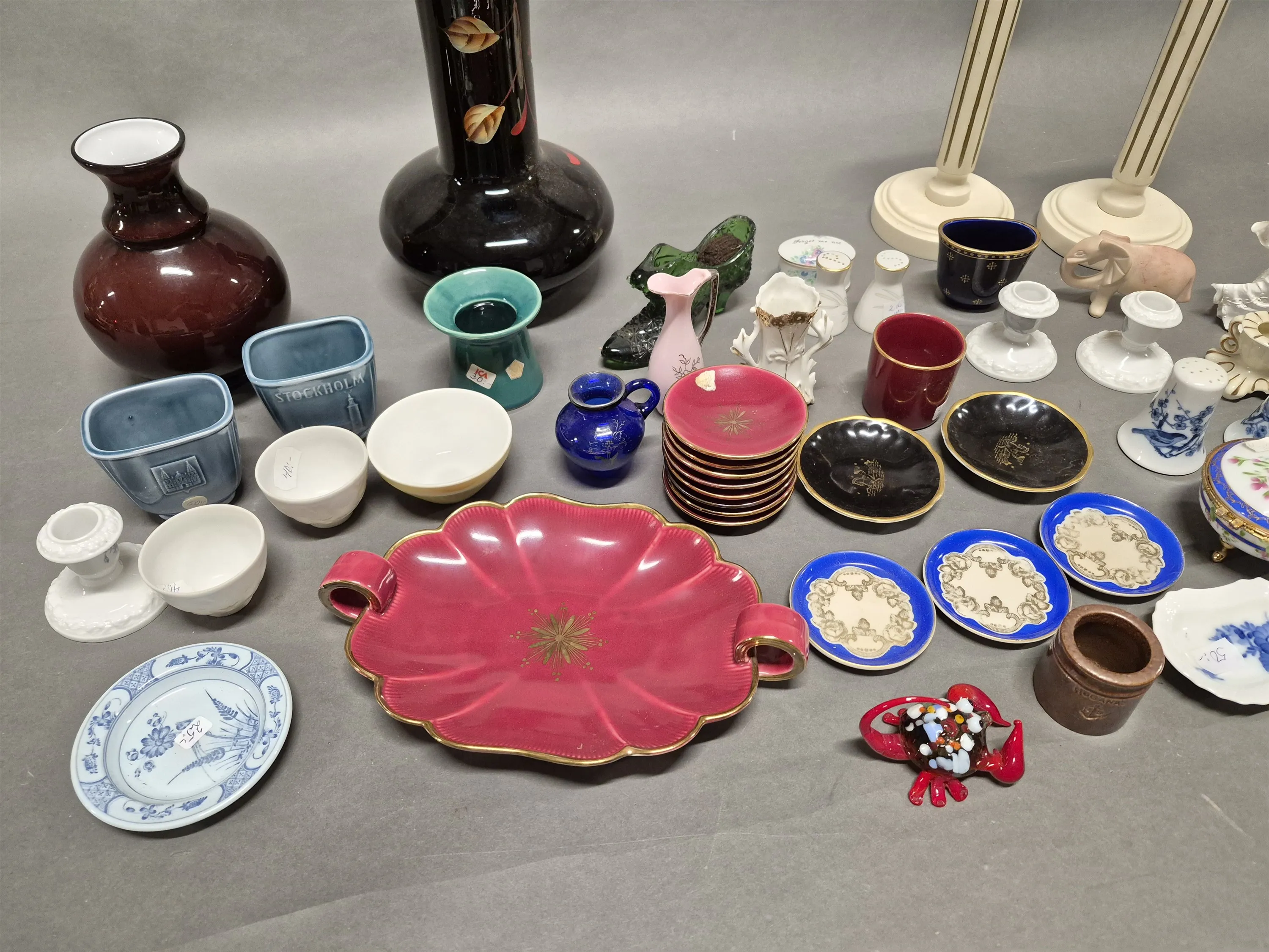17686. Parti bl.a träljusstakar, Gefle Rubin & vas glas högsta 26 cm
