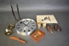 7126. Parti bl.a väggklocka & trästatyeter längsta 38 cm