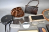 12080. Parti bl.a väskor, handspegel & borstar, längsta 41 cm