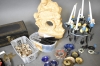 11648. Parti bla bestick, smyckesskrin och ljusmanchetter, högsta höjd 32 cm