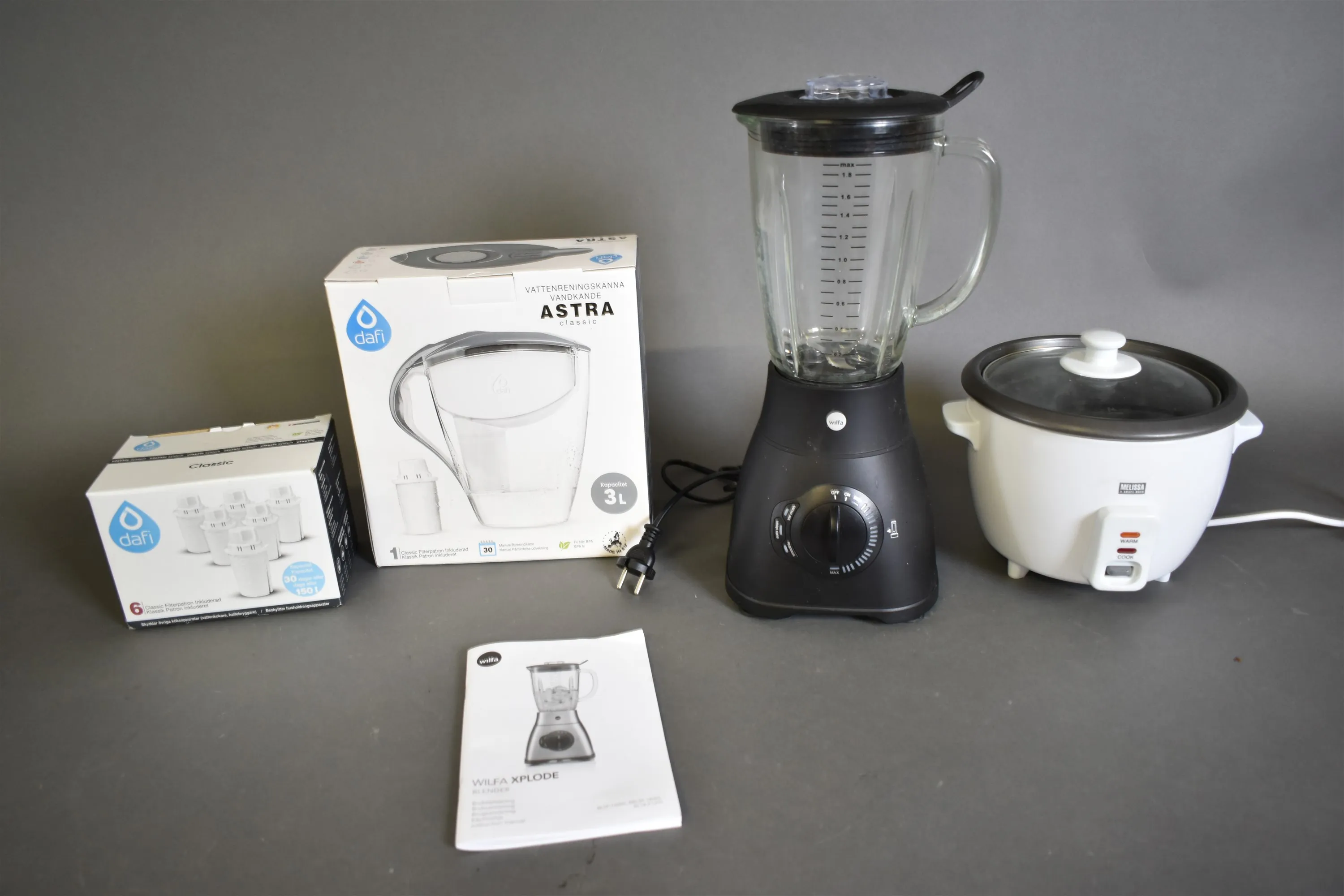 12373. Parti bla blender med glaskanna Wilfa Xplode och vattenreningskanna med extra filter, högsta höjd 43 cm