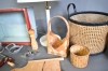 12857. Parti bla bordslampa, korgar och kökstillbehör bla Stelton tekanna, högsta höjd 69 cm