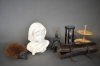 10783. Parti bla byst i gips, timglas och igelkott, högsta höjd 38 cm