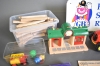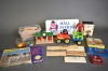 10668. Parti bla emaljerad skylt GB glass, BRIO tågbana och minnesnålar, längsta mått 45 cm
