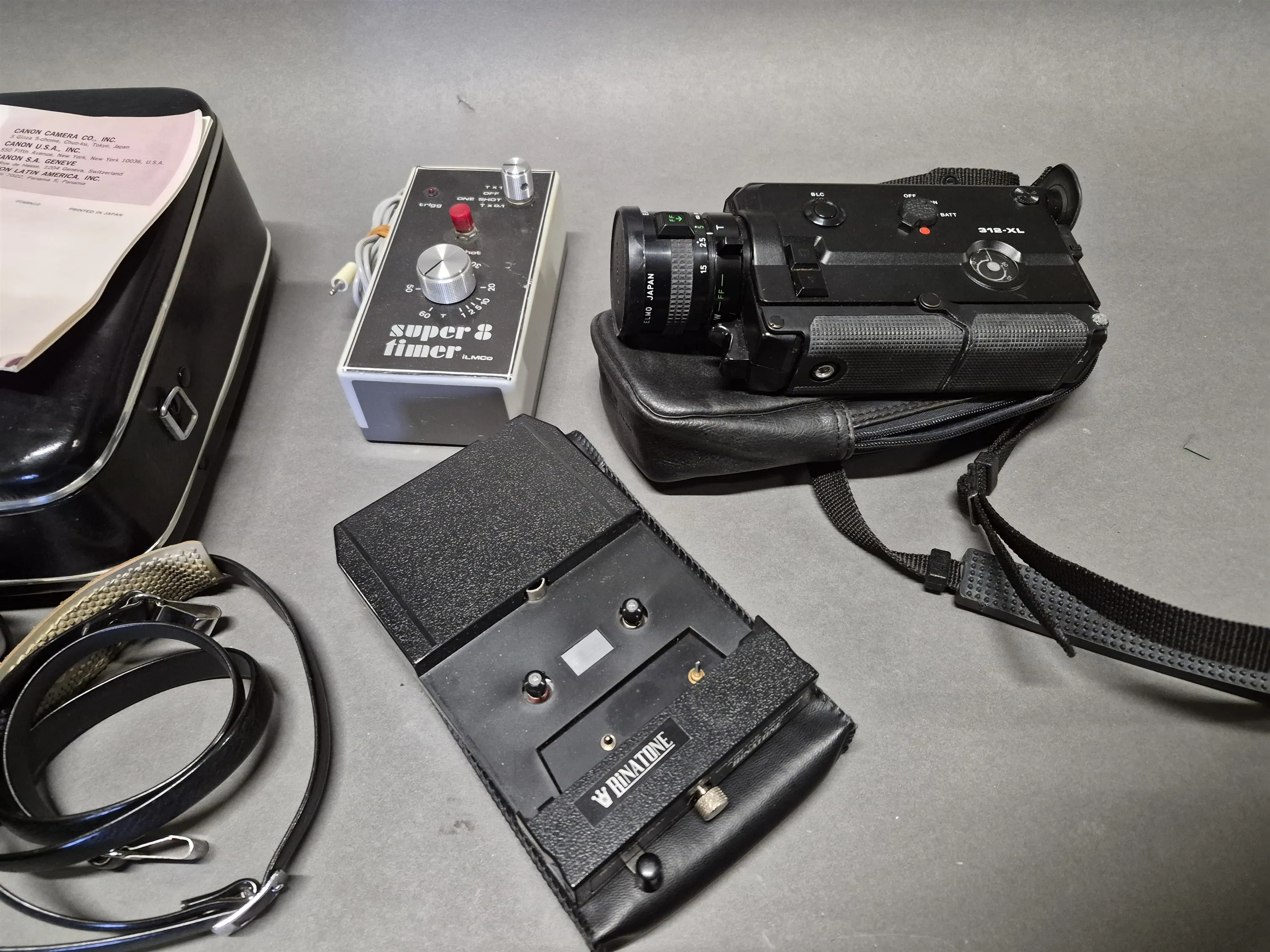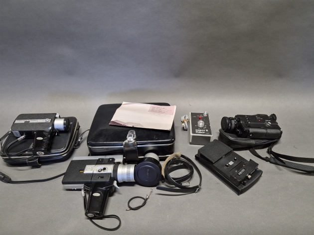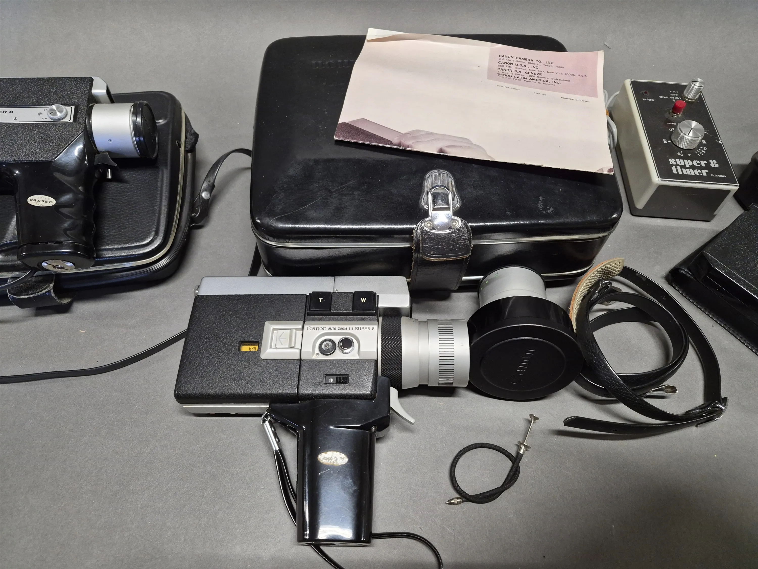 19474. Parti bla filmkamera Super 8 mm med låda, längsta mått 29 cm