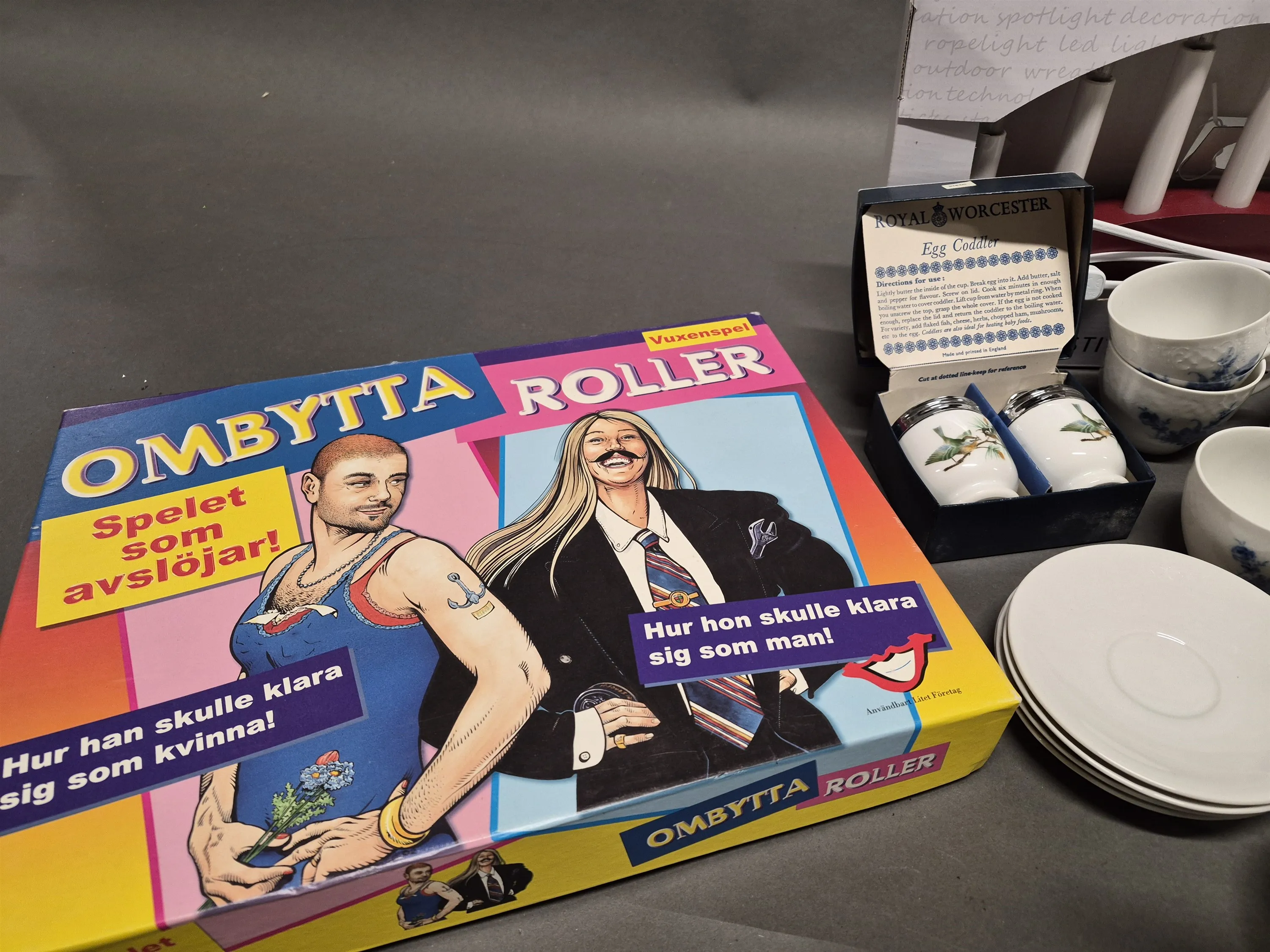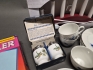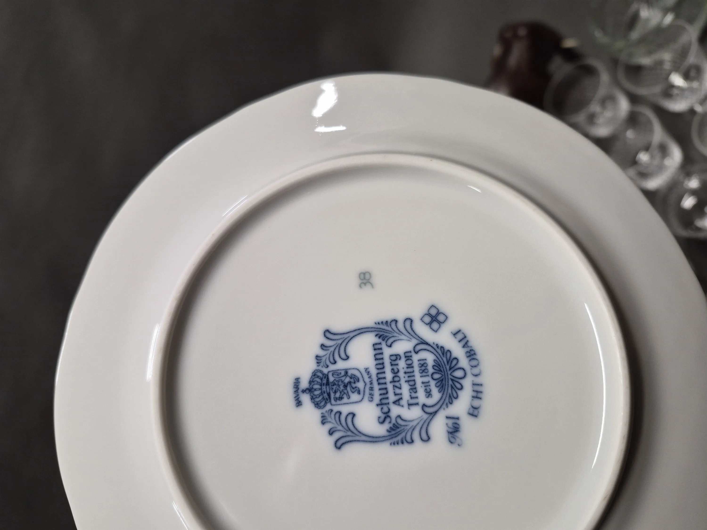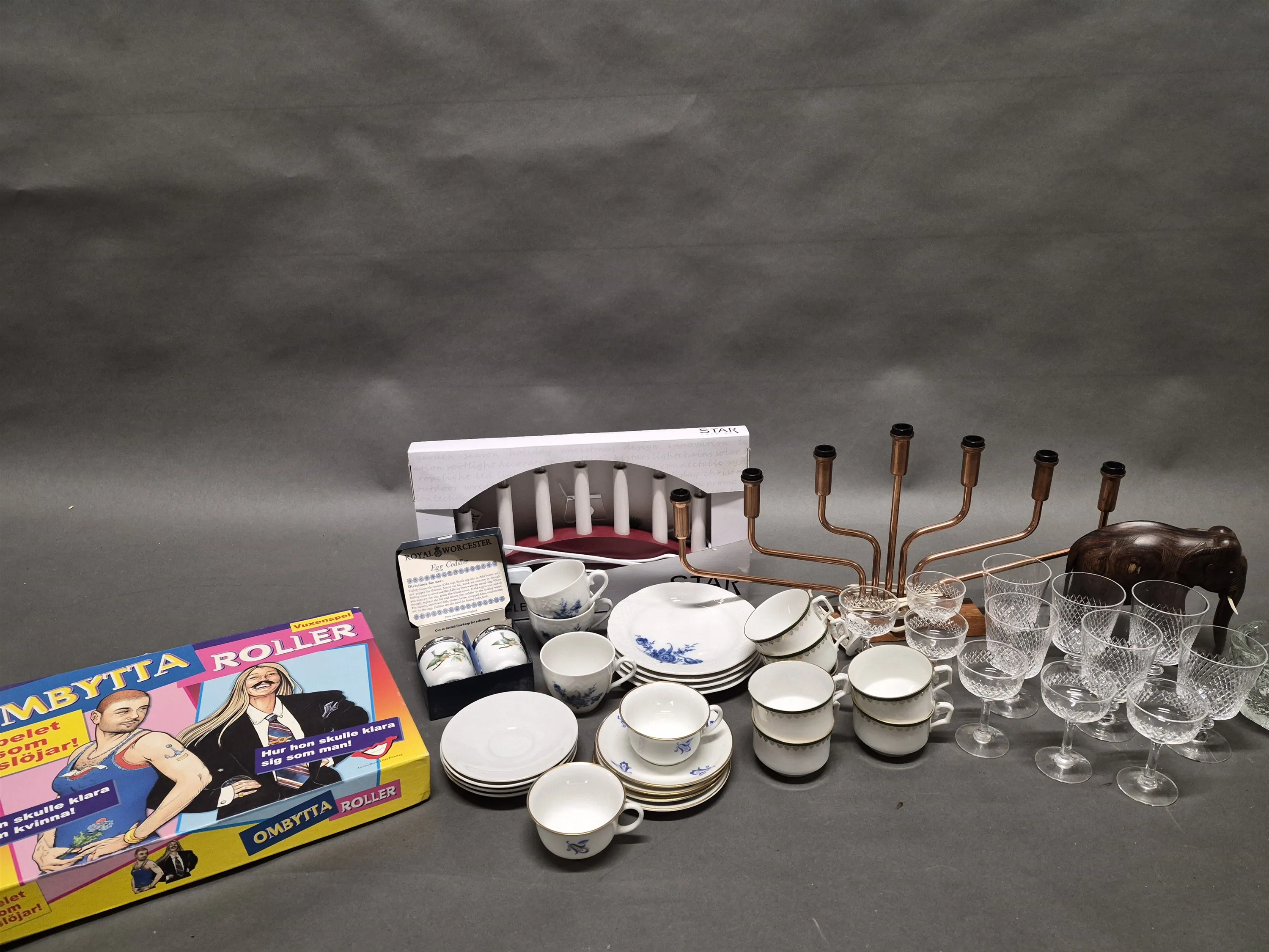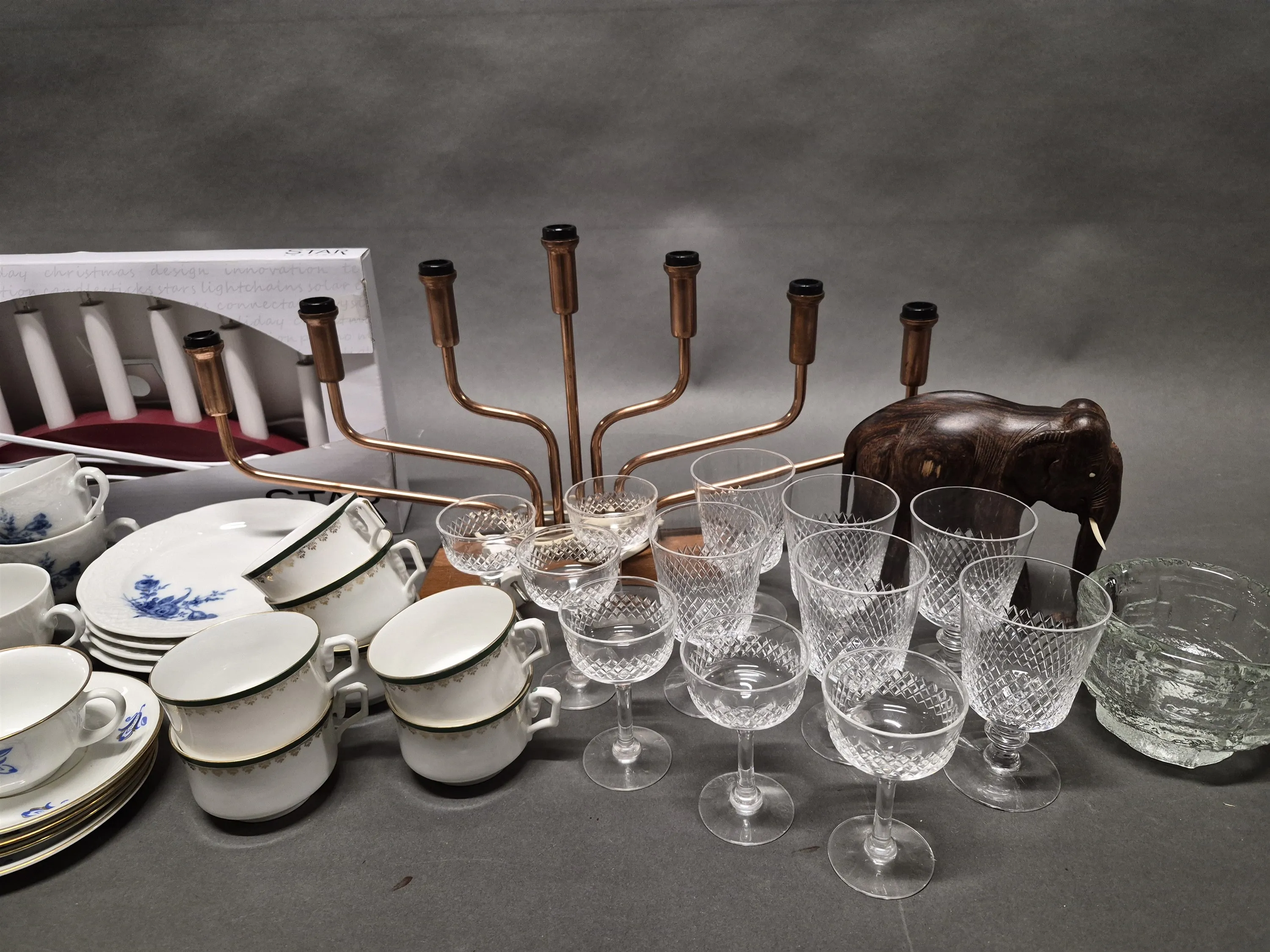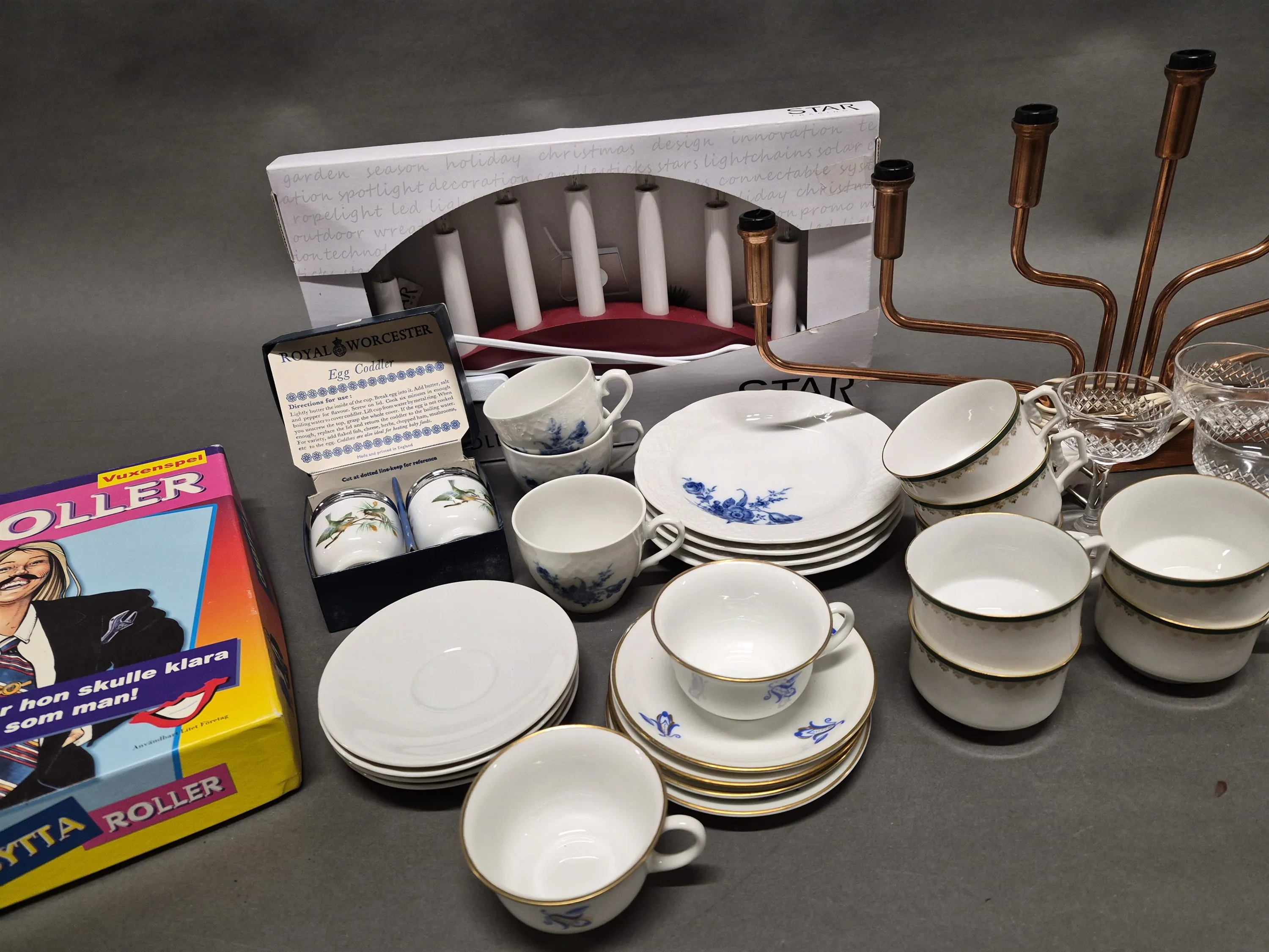 17708. Parti bla kaffeservisdelar, elljusstakar och glas, högsta höjd 26 cm